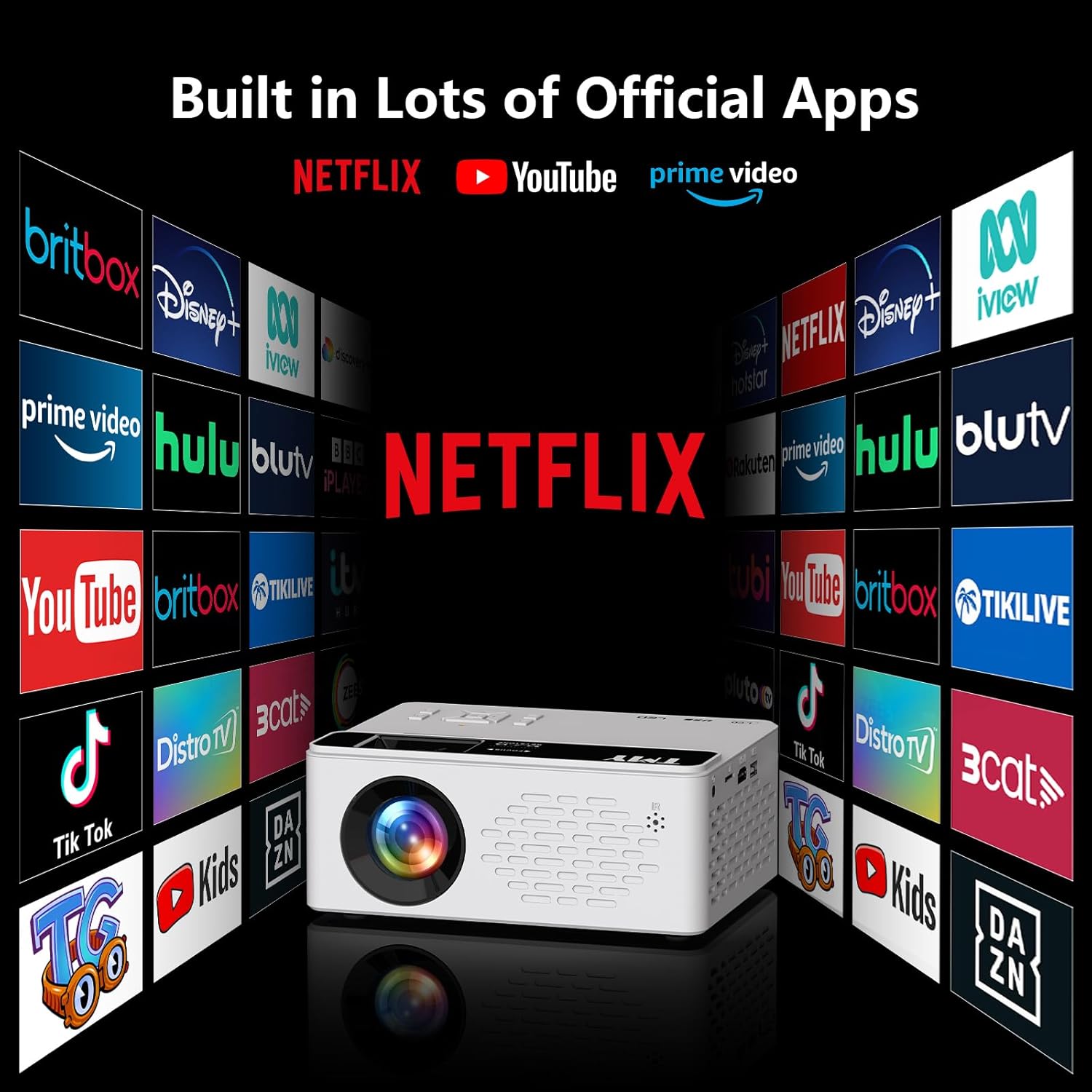 【Netflix-Officially-Licensed】TMY Mini Projector with WiFi and bluetooth, 1080P Full HD Portable Projector, Movie Projector Compatible with TV Stick Smartphone/HDMI/USB, indoor & outdoor use