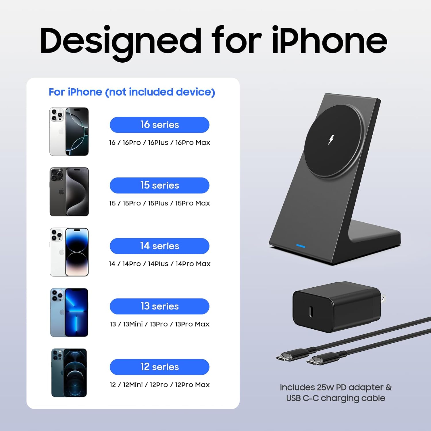 ๐๐ฌ๐ญ ๐๐ก๐๐ซ๐ ๐ข๐ง๐ : Make wireless charging a breeze with the N52 ultra-strong magnets that snap into place for precise alignment and secure attachment.The 20w Mag-Safe Charger stand has been rigorously tested hundreds of times in our labs, charging for iPhone 16 Plus from 0% to 100% in just 2h – a 2x speed increase and a significant reduction in your wait! Note: Data measured in a room at 77ยฐF, results may vary by model and temperature