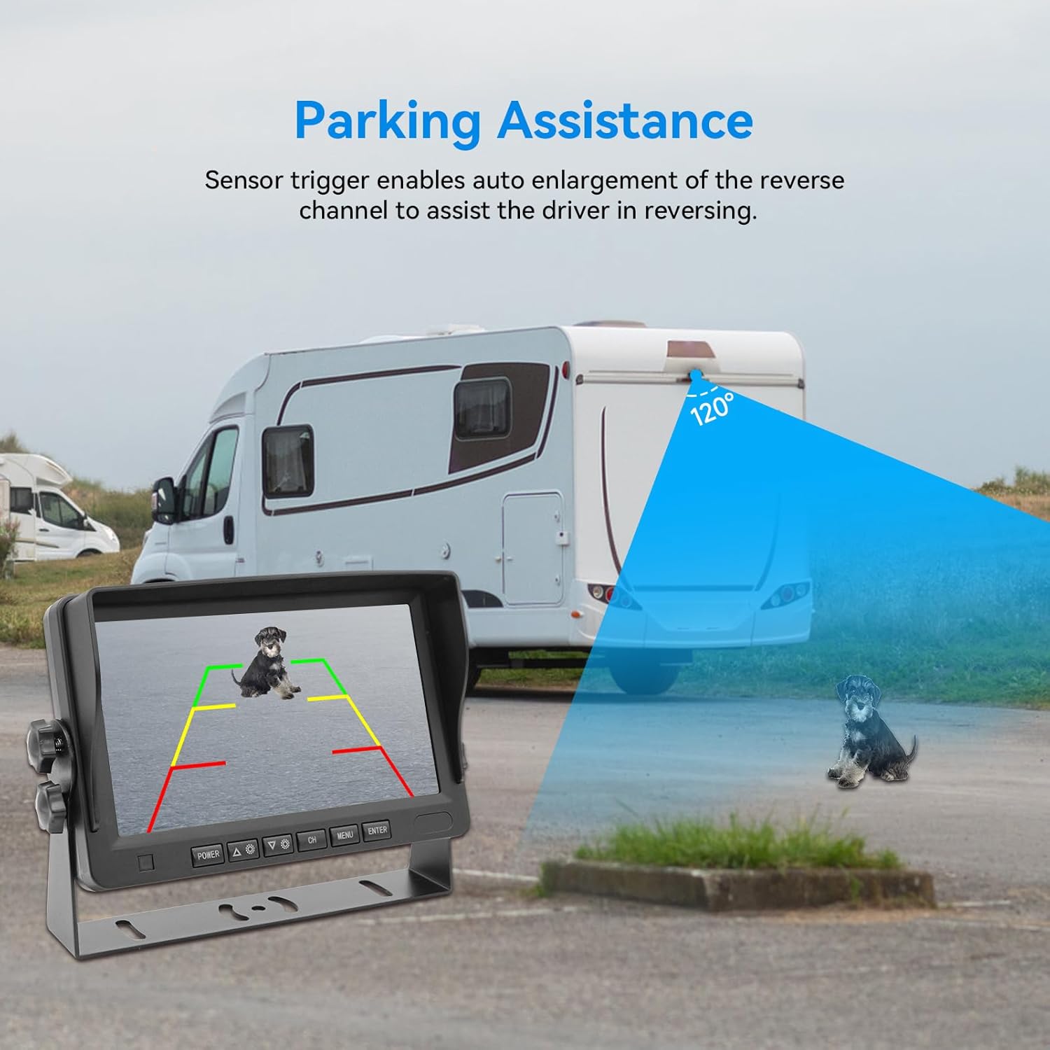 【1080P Starlight &Waterproof Camera】4 waterproof metal cameras that can operate directly outdoors without worrying about rainy or other harsh weather conditions.Night vision accurate image display a real-time road condition.