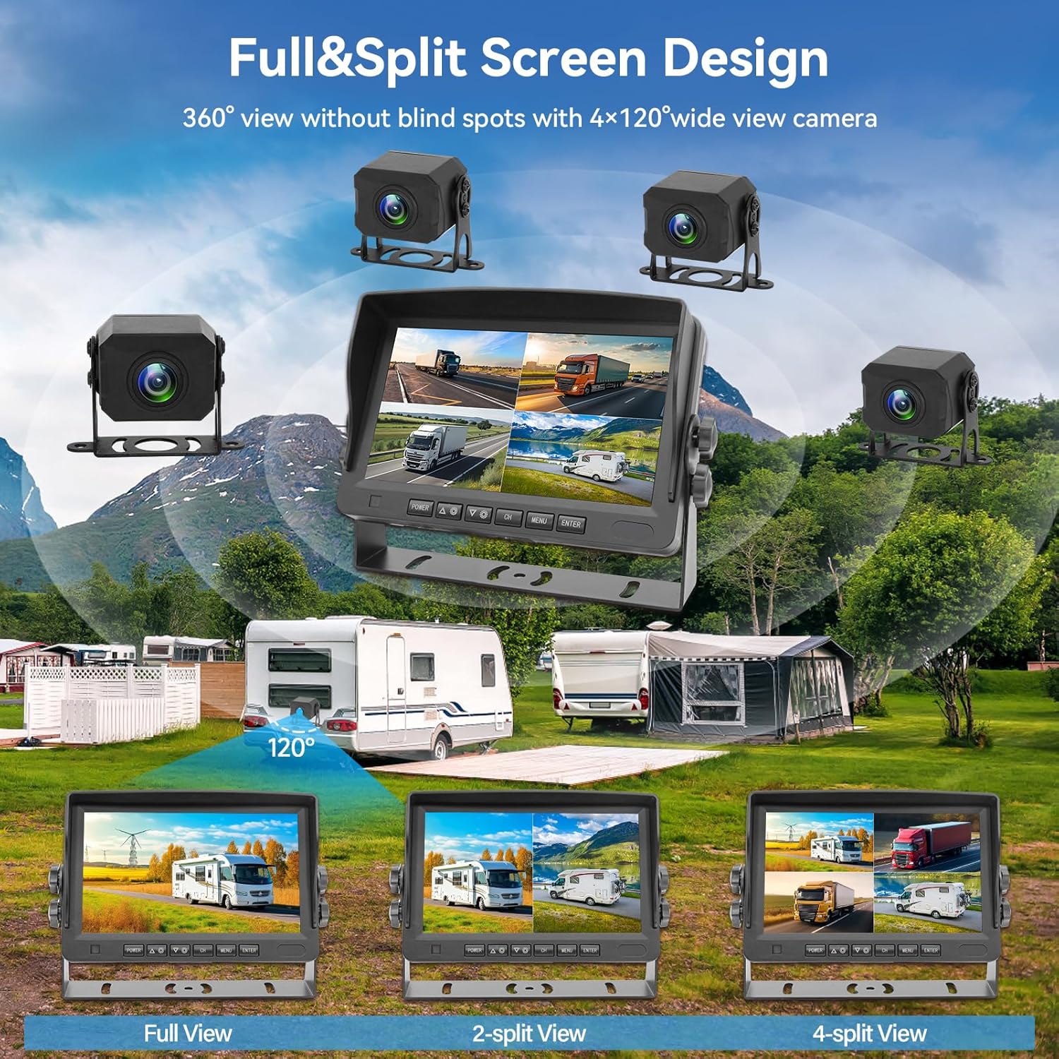 4-CH WiFi GPS RV Backup Wired Camera System with 4x1080P Front&Rear&Side View Camera,7″” VGA Monitor,IR Night Vision/IP69K Waterproof,DVR Video Recorder Kit for Truck,Trailer