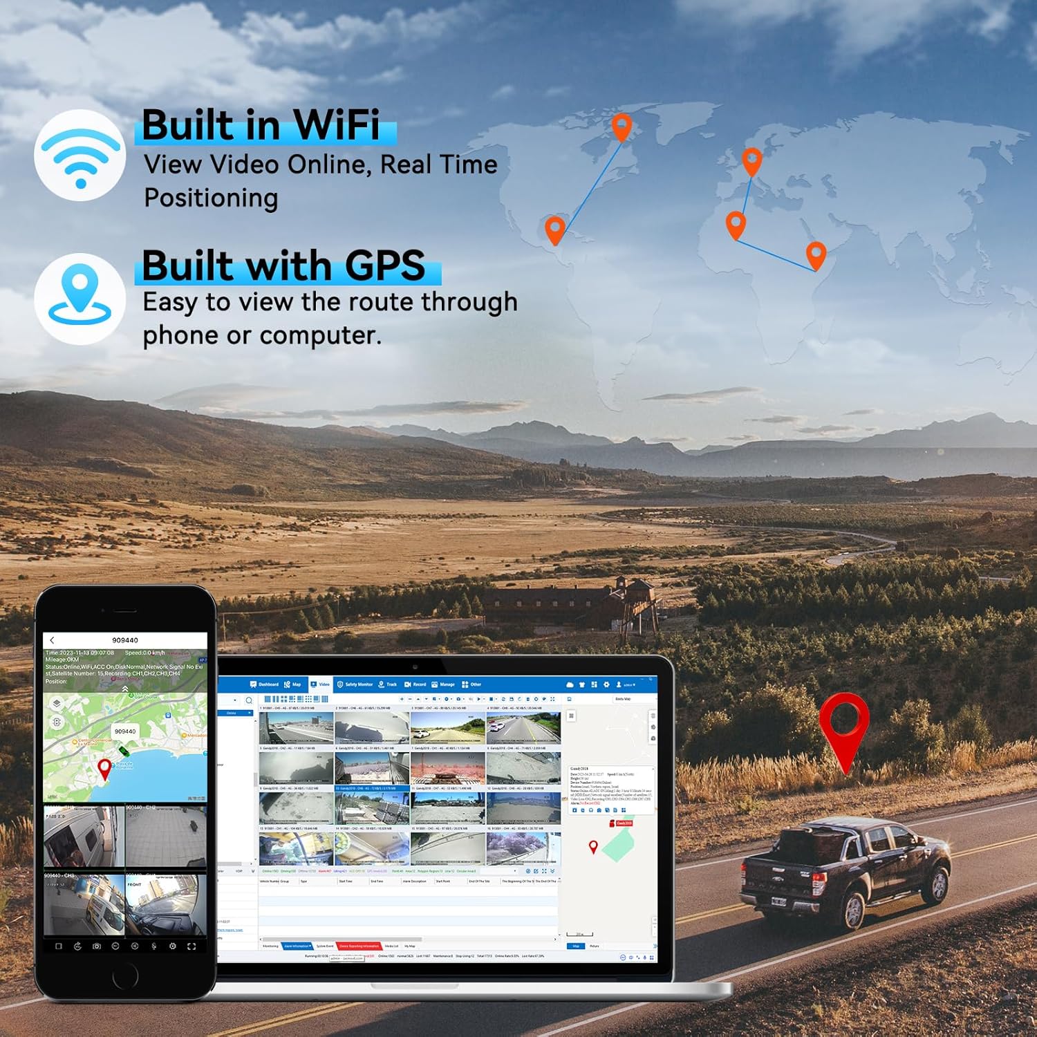 【WiFi&GPS Fuction】View Video Online, Real Time Positioning.Easy to view the route through phone or computer.The WIFI allows you to connect the mdvr to a wifi network to connect to the internet.