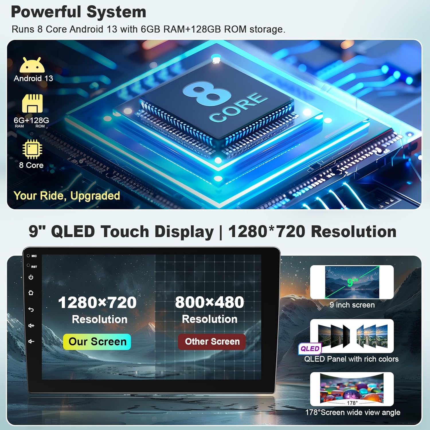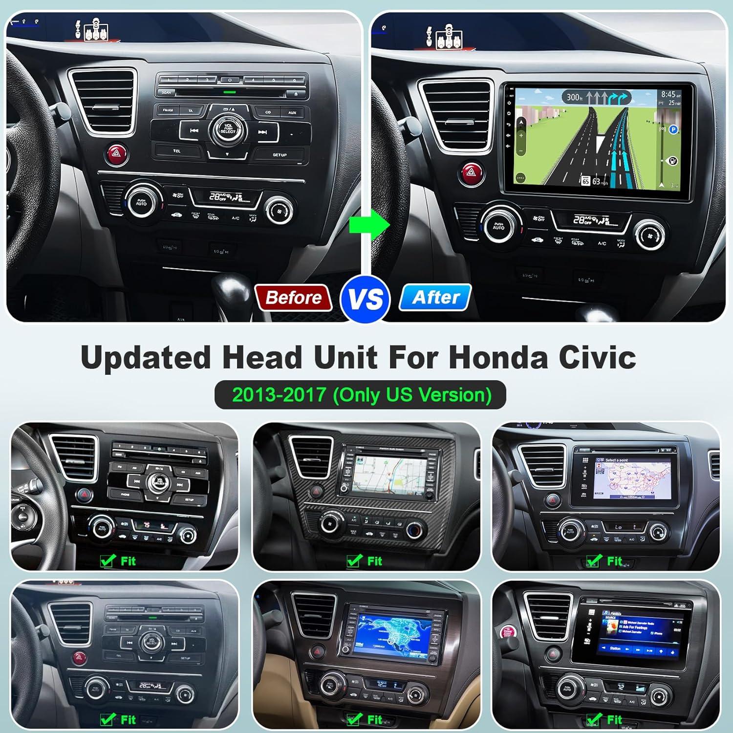 【Advanced 8-Core Android 13 System】Upgrade your US Version 2013-2017 Honda Civic with our advanced car stereo! Featuring a powerful 8-core processor, 6GB RAM + 128GB storage, and the latest Android 13 OS. Enjoy a stunning 9-inch QLED display with 1280×720 resolution and a wide 178-degree viewing angle — smarter, smoother, and sharper than ever.
