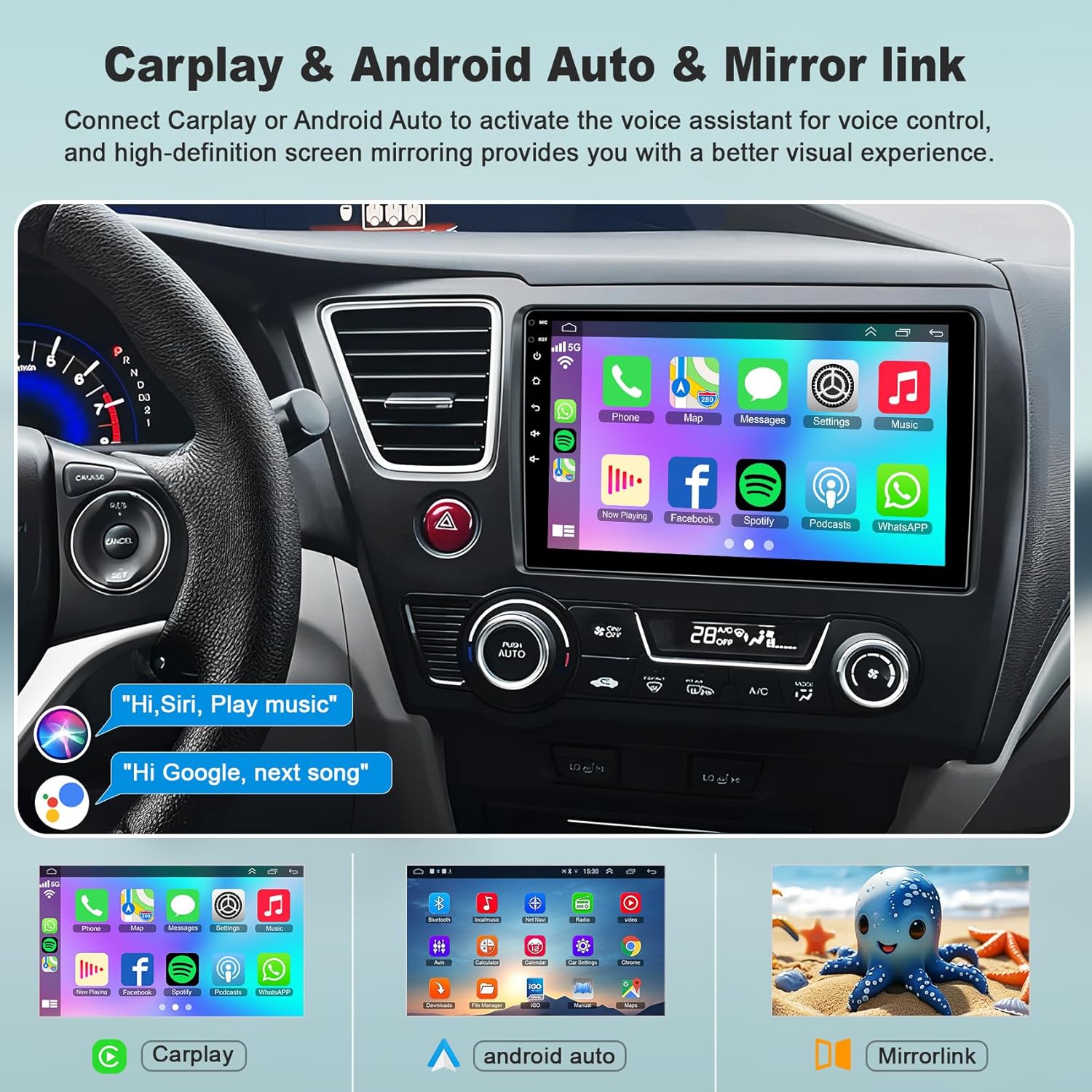 【Wireless CarPlay & Android Auto】Car Stereo for Honda Civic 2013-2017(Only US Version) stay connected effortlessly with both wireless and wired CarPlay and Android Auto. Simply pair via Bluetooth to enjoy hands-free calls, real-time navigation, music streaming, and Voice-control apps with your voice assistant.
