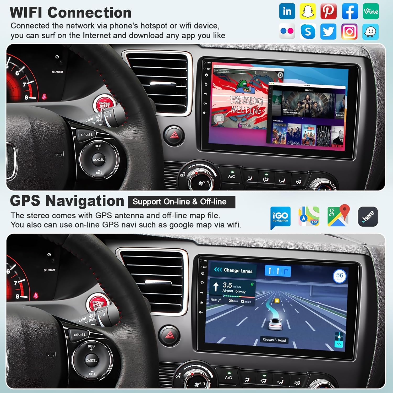 【WIFi & GPS】Stay online wherever you go! Connect to Wi-Fi or a hotspot to browse the web and download your favorite apps. Enjoy GPS navigation with real-time online guidance or pre-download maps for reliable offline use. Engineered specifically for your Honda Civic, this car radio keeps you connected and on route.