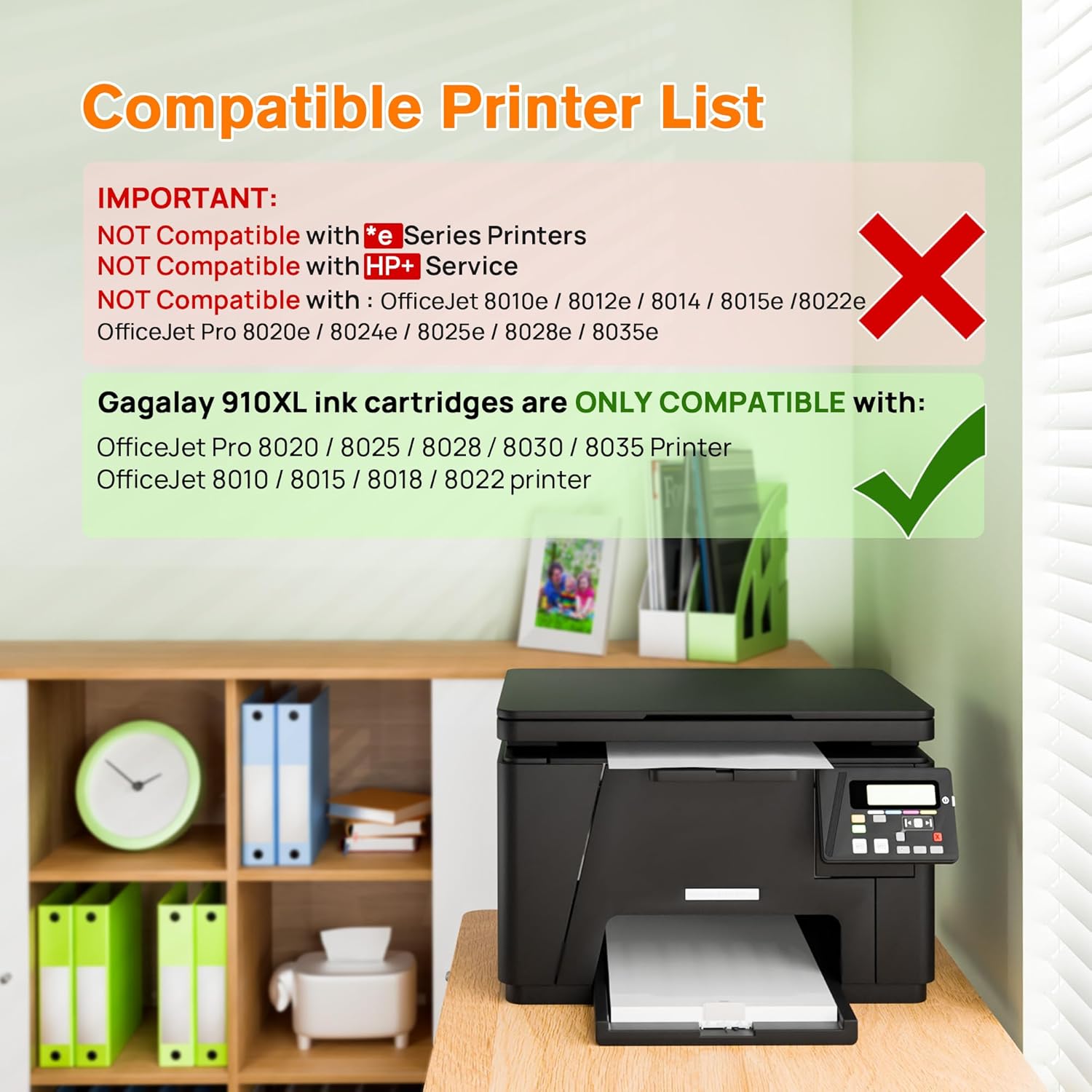 COMPATIBLE PRINERS: Gagalay 910xl ink replacement for hp 910xl ink cartridges combo pack work for HP OfficeJet Pro 8020, 8025, 8028, 8030, 8035; OfficeJet 8010, 8015, 8018, 8022 printers.