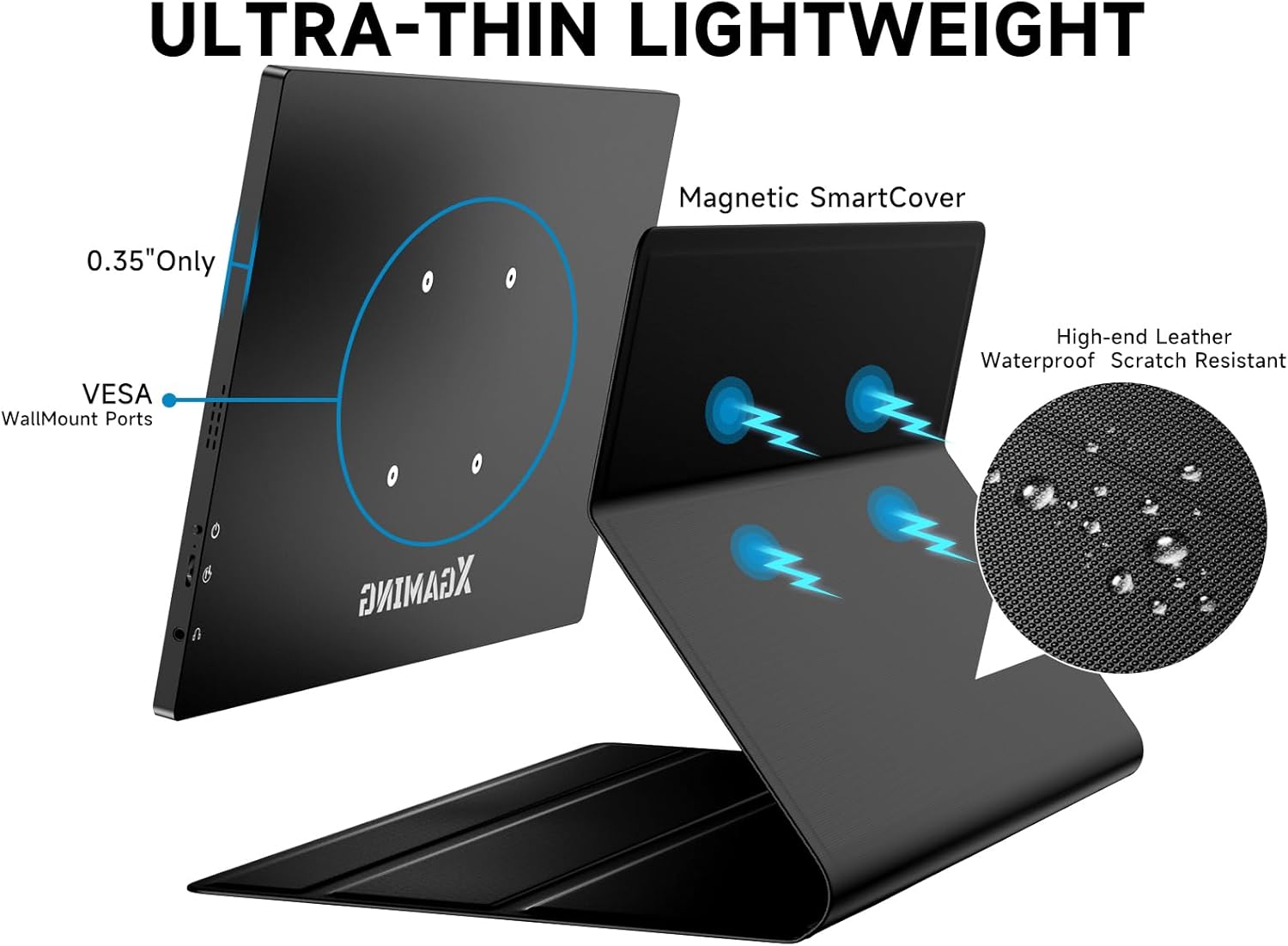 IPS Matte Screen: Wide 178° viewing angle, 100% sRGB, and 1200:1 contrast ratio with anti-reflection and anti-fingerprint features; perfect for immersive visuals and eye protection. VESA Mount & Smart Cover: Versatile mounting options with VESA compatibility (M4*4 mm), supporting both landscape and portrait modes; magnetic PU smart cover for protection and use as a stand.