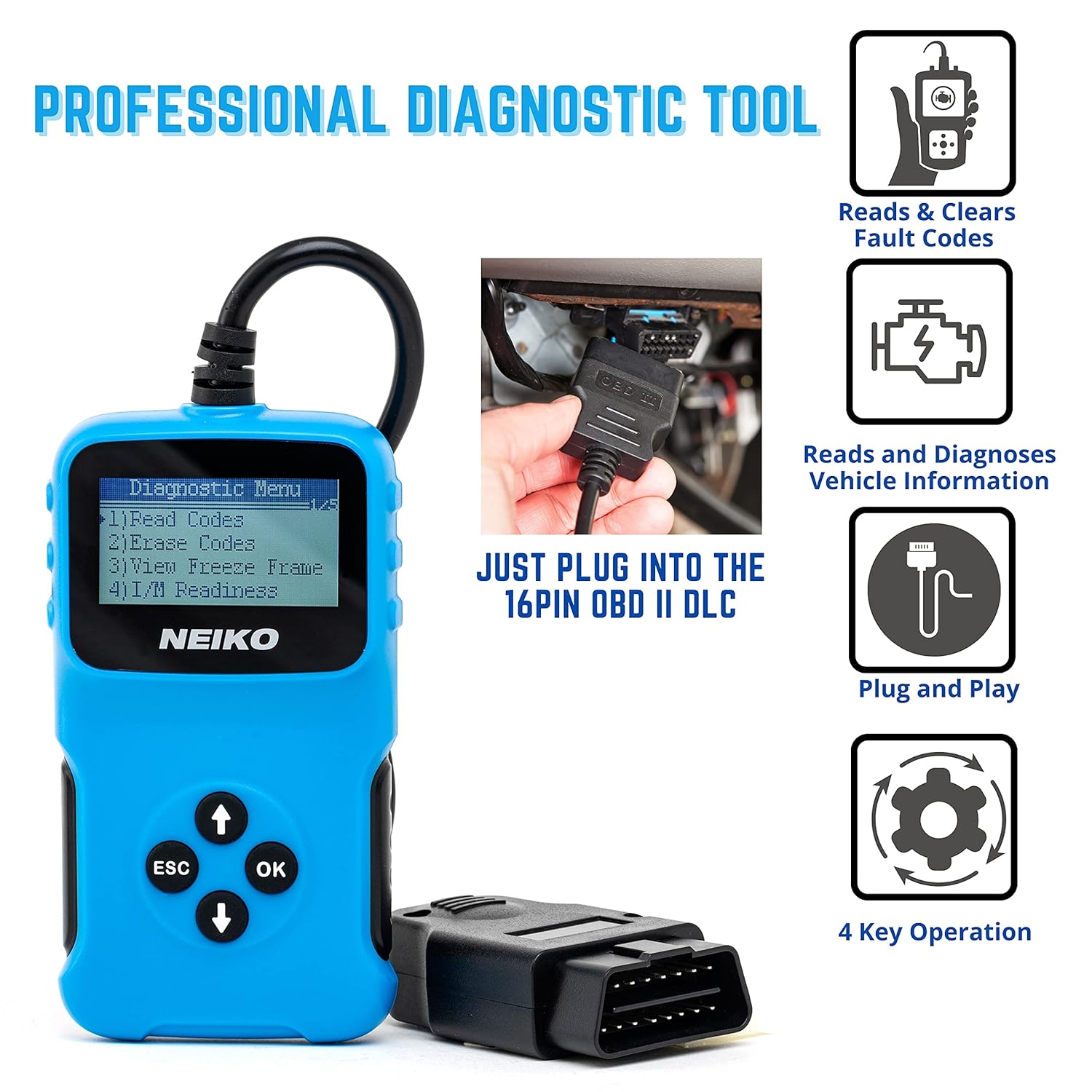 NEIKO 40500A Car OBD2 Scanner, Car Scanner Code Decoder, Reader & Eraser Automotive Check Engine Light Diagnostic Read & Clear Emission & Fault Codes 9, Code Reader, OBD2 Scanner Diagnostic Tool