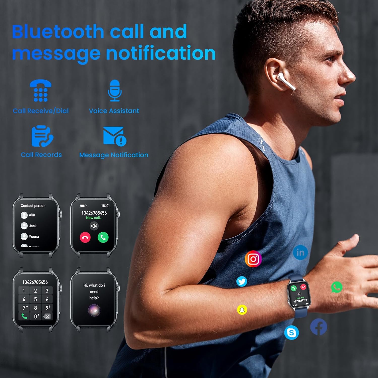 This smartwatch as well as view message notifications (SMS, Facebook, WhatsApp,Twitter, Tiktoketc.). Whether you’re in a meeting or exercising, the mens smart watch helps you manage your communications quickly and efficiently. If you do not need this feature, you can easily turn it off.