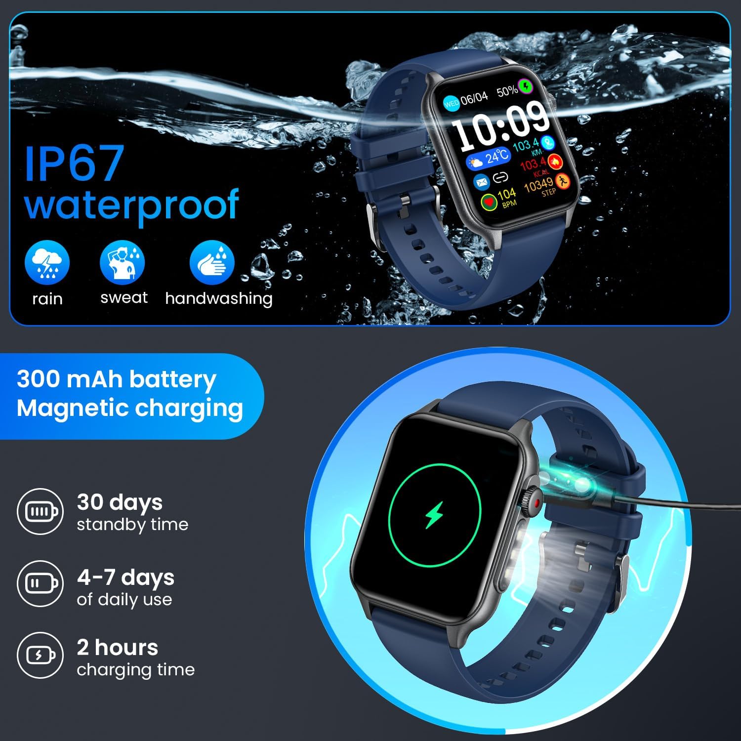 Waterproof Sports Mens Watch: Fitness watches for men provides your daily steps, calories burned and distance. Also, the pedometer watch provides more than 100 sports modes, including running, cycling, badminton, etc. select the corresponding sports mode in the smartwatch, and the watch will record your exercise time, heart rate and other data.This health watches is IP67 Waterproof, so you don’t have to worry about the normal use of the watch whether it’s for outdoor activities or daily use.