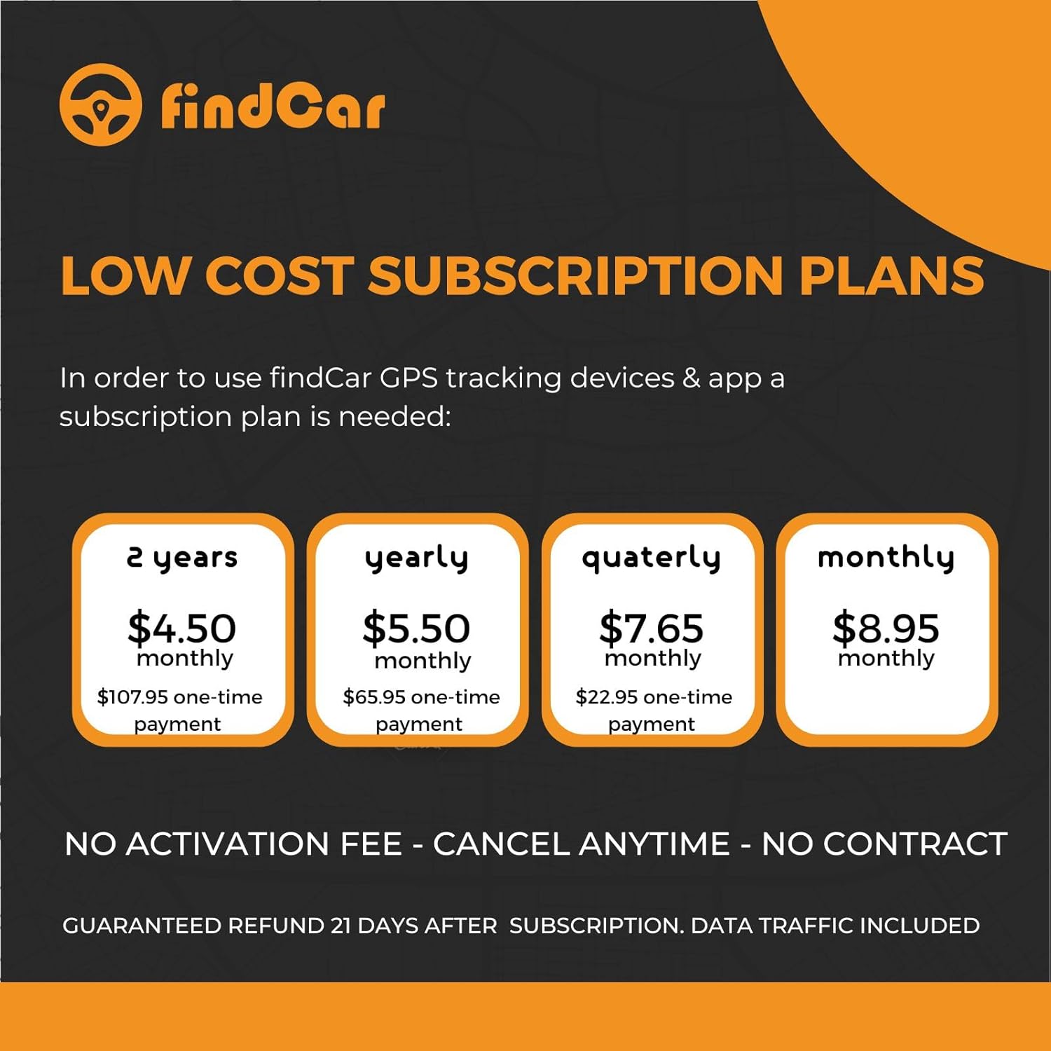 LOW COST SUBSCRIPTION PLANS – You can choose between different afforfable Subscription Plans (monthly, quarterly, yearly, 2 years) Long term $4.50/month | monthly $8.95. No hidden fees – No Activation Fees – Cancel Anytime