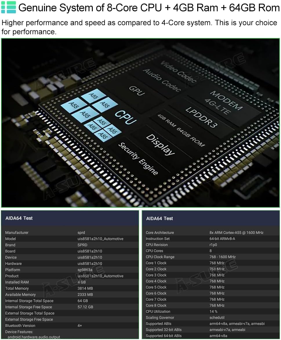 【Car Radio Upgrade】Customization Android system,with 8-Core 1.6Ghz CPU,4GB RAM,ensures smooth operation and faster response,64GB ROM for more apps installed,1280*720 HD Touchscreen thrid-gen IPS display,color richer and display clearer,Screen Display Resolution 1280×720, Video output resolution 1024×600 (to external monitor)