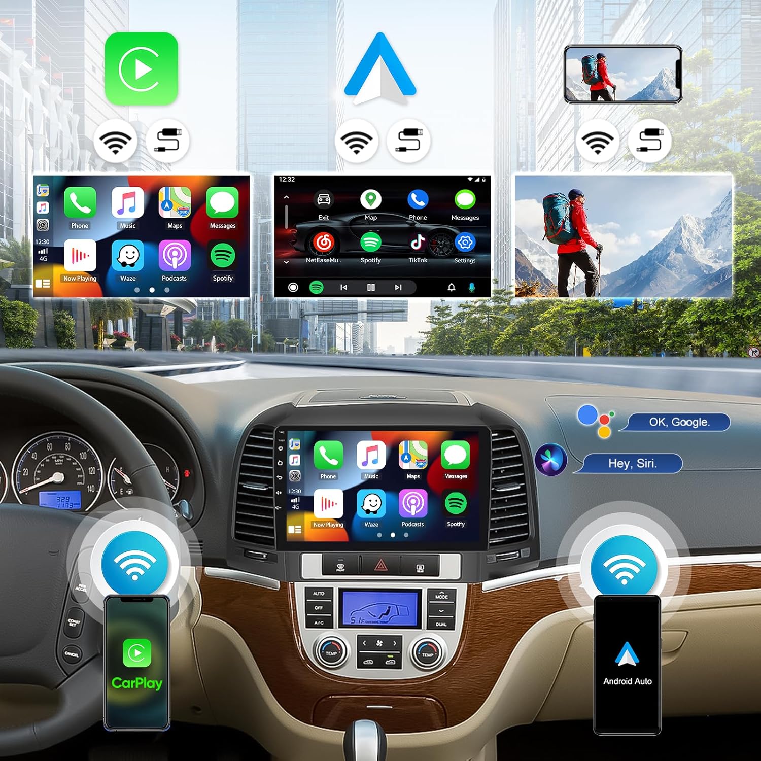 [WIRELESS APPLE CARPLAY & ANDROID AUTO] – With both platforms, Apple Carplay and Android Auto, link wirelessly to access mobile phone contacts, calls, messages, navigation, music and other information. Using a voice assistant to avoid distracting, keep you stay focused, connected and entertained
