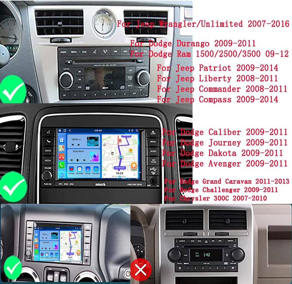 10″ Android 13 Car Stereo Applicable Car Models: This Android 13 Car Stereo with backup camera touch screen car radio Compatible for Jeep Wrangler/Unlimited 2007-2016, Fit for Jeep Patriot 2009-2014, Fit for Liberty 2008-2011, Fit for Commander 2008-2011, Fit for Compass 2009-2014, Fit for Dodge Ram 1500/2500/3500 2009-2012, Fit for Dodge Caliber 2009-2011, Fit for Dodge Durango 2009-2011, Fit for Chrysler Aspen 2007-2010