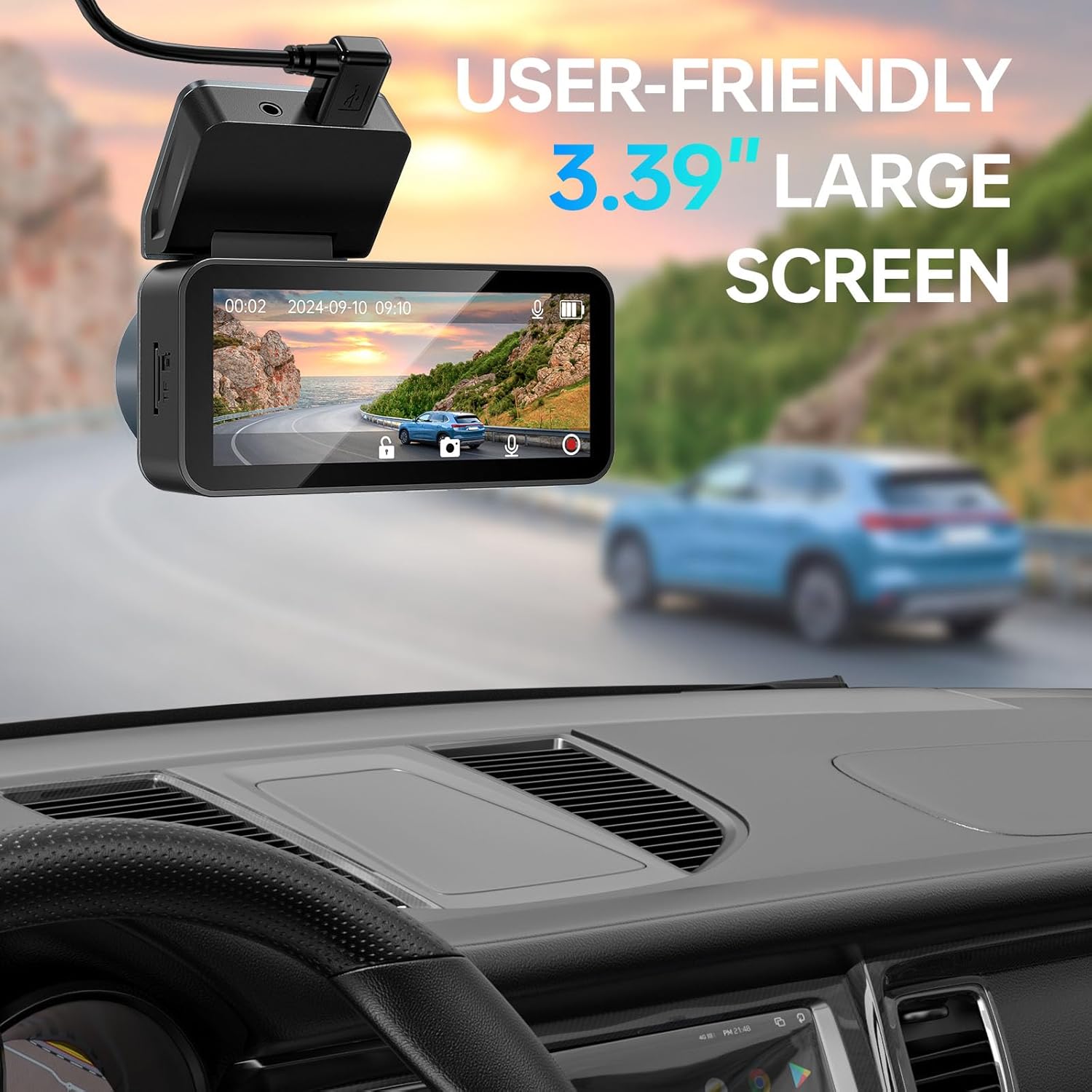 LARGE SCREEN: The dash cam features a 3.39″ IPS screen that delivers clear, vibrant visuals, enables users to playback recorded footage directly on the device, making it easy to verify and assess events without needing external devices or computers.