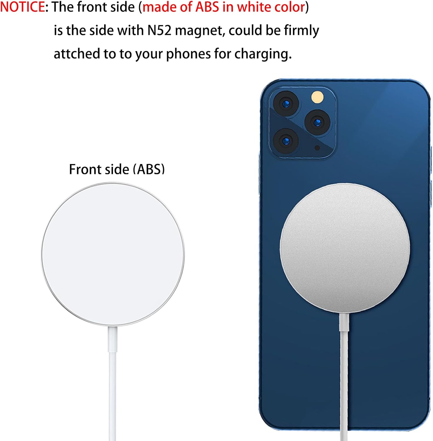 【What’s in the Box】: 1pc Mag safe Wireless Charging pad, 1pc USB connector, 1pc 3.3ft USB-C Cable, 1× User Manual. TIPS: ONLY compatible with caseless iPhone 16/15/14/13/12 series phones or Magnetic/Mag-safe cases.