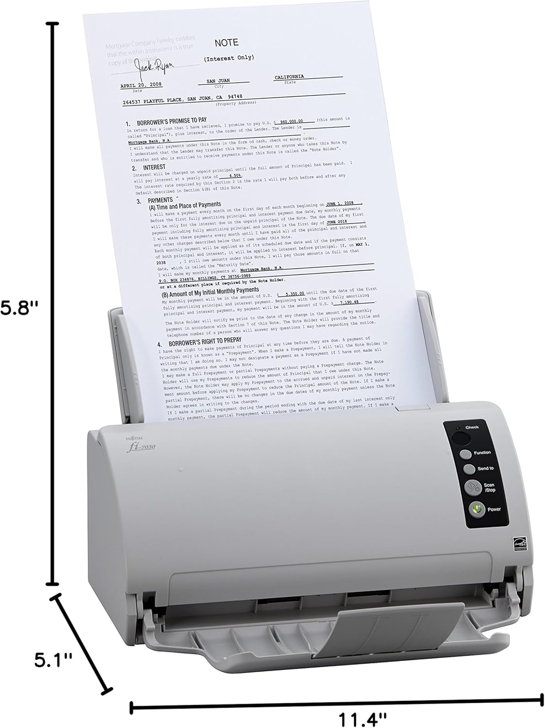 The Fujitsu fi-7030 is an excellent front office scanner for lighter duty cycles but still with the ability to scan IDs and cards.
