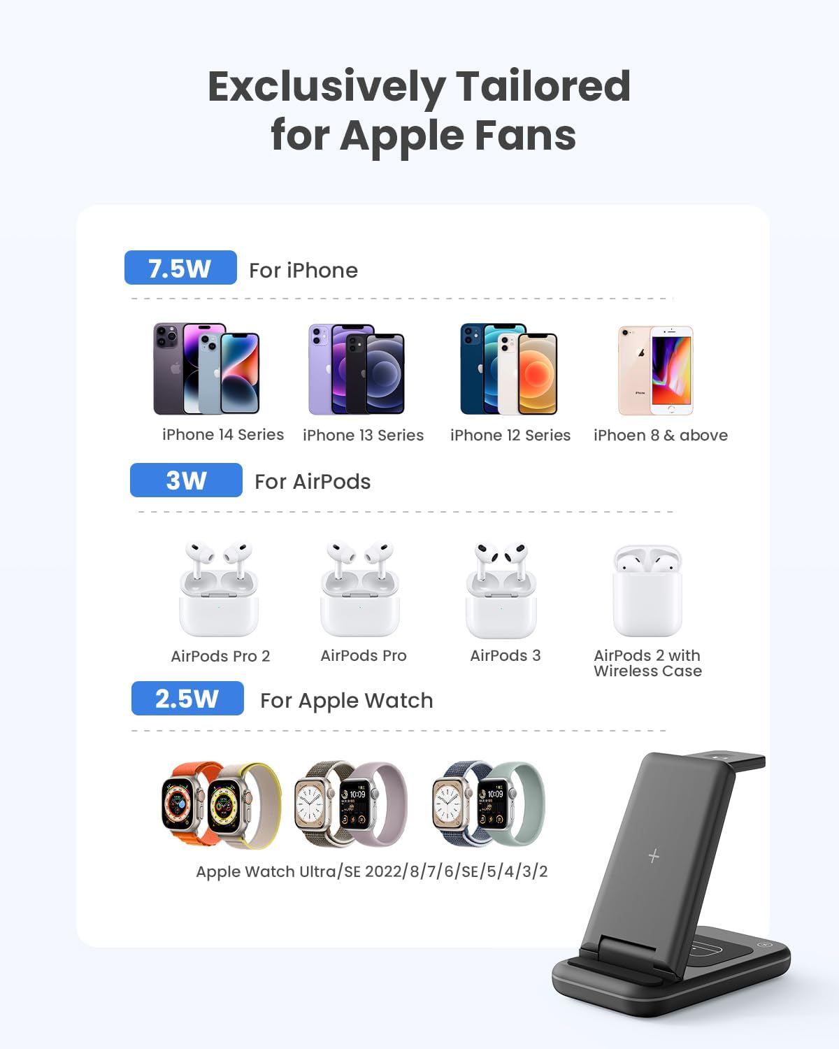 GEEKERA 3 in 1 Foldable Wireless Charging Station for Multiple Apple Devices