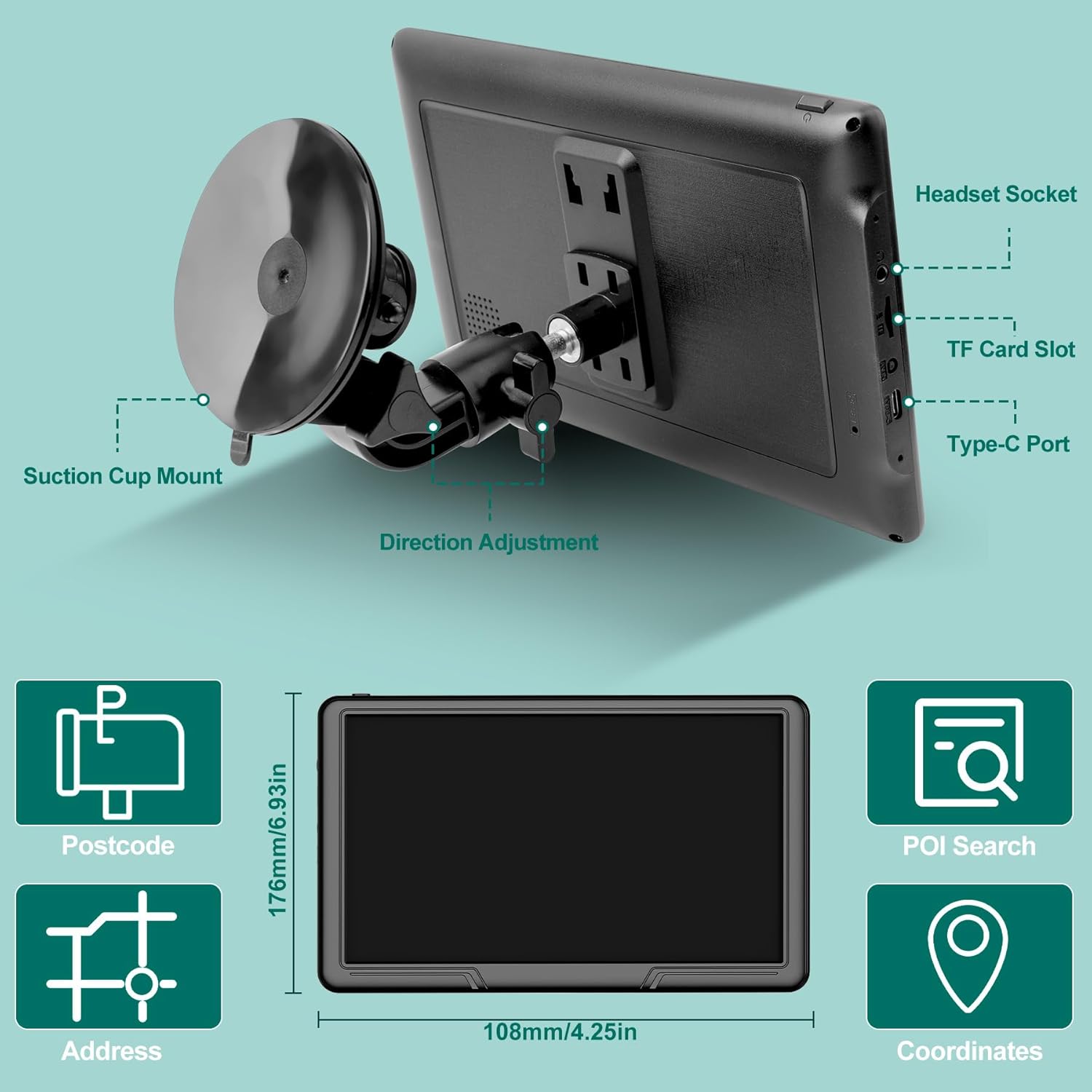 【Vehicle GPS Units & Equipment】 This trucking GPS unit comes with everything you need, including a complete set of accessories: car charger cable, user manual, suction cup mount, glued holder, Type-C charging cable, and packing box. You can choose suction cup mount or glued holder to easily secure the GPS to your windshield or dashboard, ensuring a stable, comfortable and safe navigation experience Designed for convenience, this package of trucker navigation is perfect for all vehicle types.