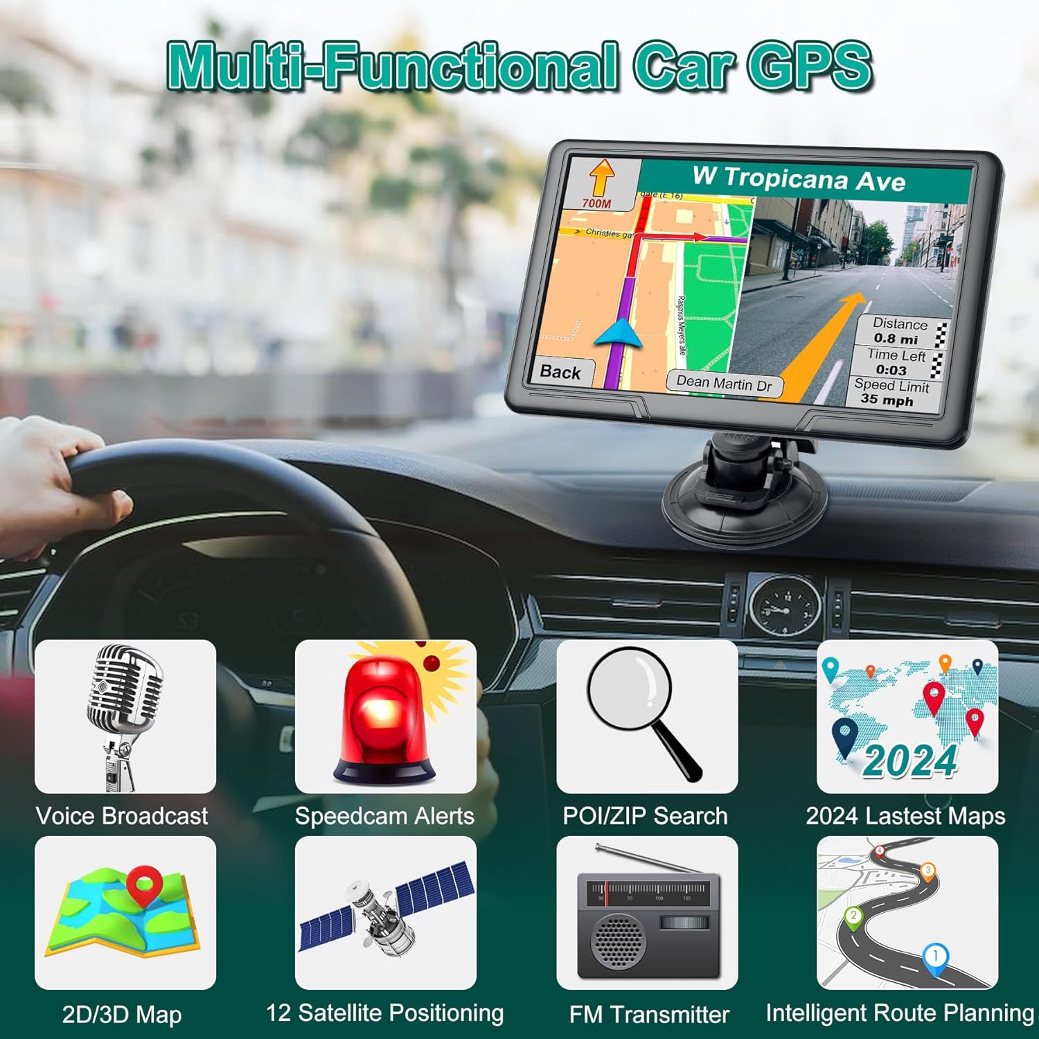 GPS Navigator for Car with Lastest 2024 Map, Free Lifetime Update, Car GPS Navigation System for Truck Commercial Drivers, Support Postcode POI Search, Voice Guidance, Speedcam Speedlimit Alerts, FM