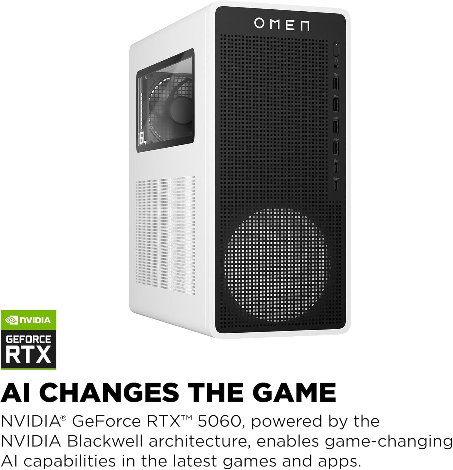 HP OMEN 16L Gaming Desktop PC, AMD Ryzen 5 8500G, 16 GB RAM, 1 TB SSD, NVIDIA GeForce RTX 5060, Windows 11 Home, Microsoft Copilot, Panda Metal, TG03-0020 (2025)