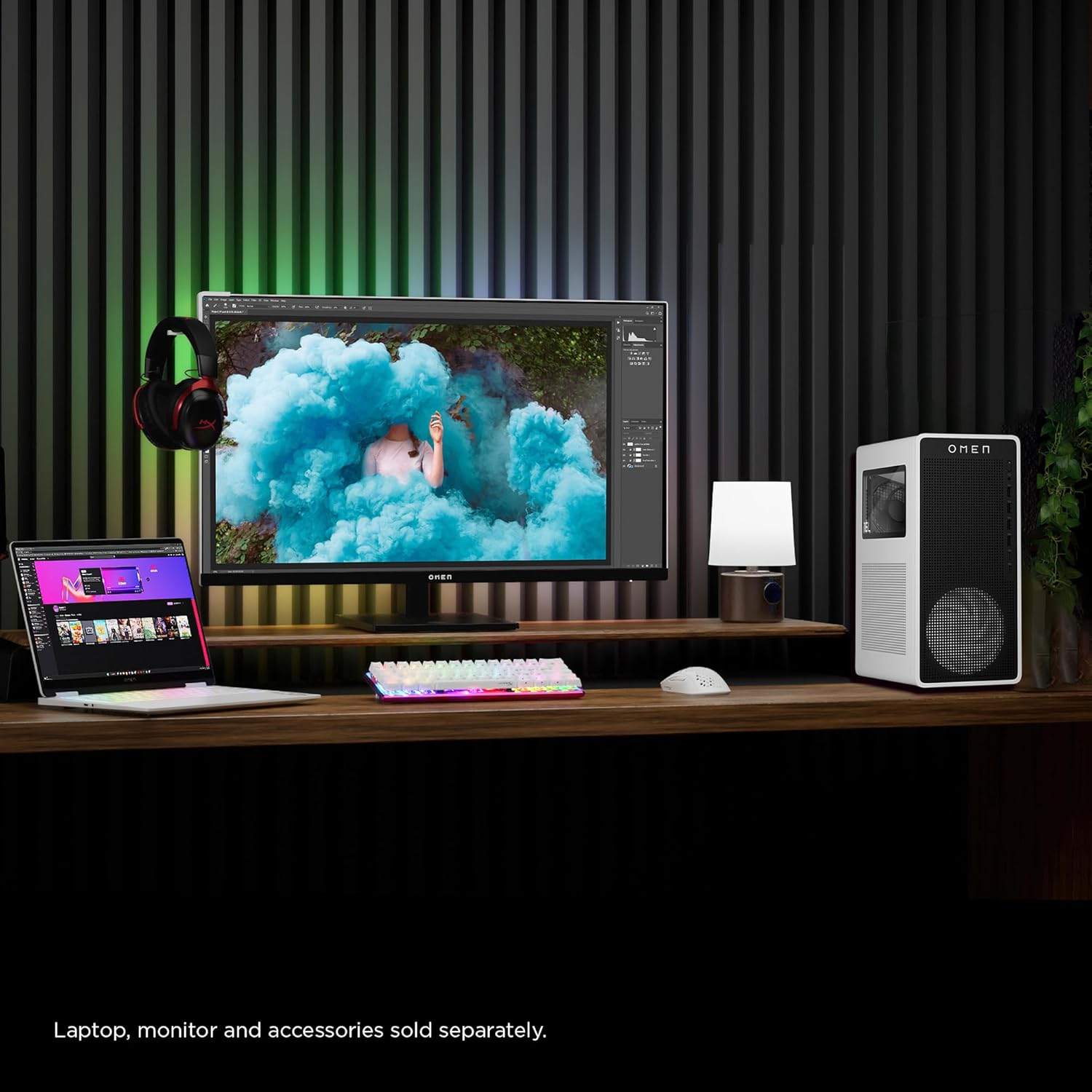 Unwind with the OMEN 16L Gaming Desktop PC. With an AMD Ryzen 5 8500G processor and high-performance graphics, it delivers elevated performance in a compact size. Customize your PC with RGB effects through OMEN Light Studio and get personalized settings recommendations with OMEN AI. The 16L is the perfect companion for your next adventure. This HP computer comes with an HP USB white wired keyboard, HP USB white wired mouse, 500 W 80 Plus Platinum certified power supply, setup instructions, and 3 months of PC Game Pass included. HP is here to help. This HP computer comes with 1-year limited hardware warranty and 1-year limited technical support for software and initial setup.