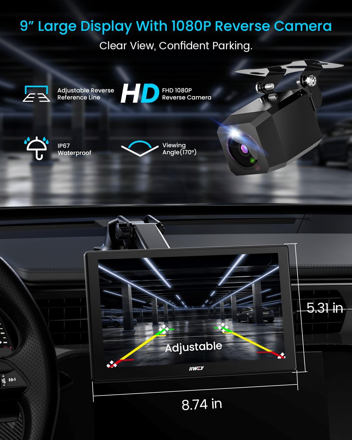 IK5 9″ Wireless Apple CarPlay & Android Auto Screen, Portable Car Stereo with 4K Dash Cam & 1080p Backup Camera, Add CarPlay to Any Vehicle, Touchscreen, Mirror Link