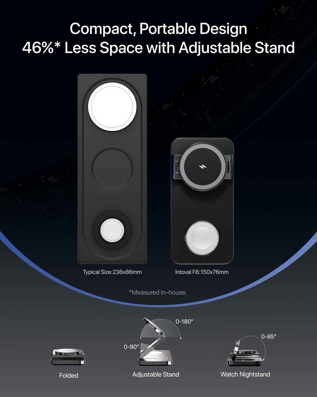 This 3-in-1 MagSafe charger is perfect for any setting—office, bedside, airport,or travel. Its foldable design offers fast, reliable charging wherever you are.