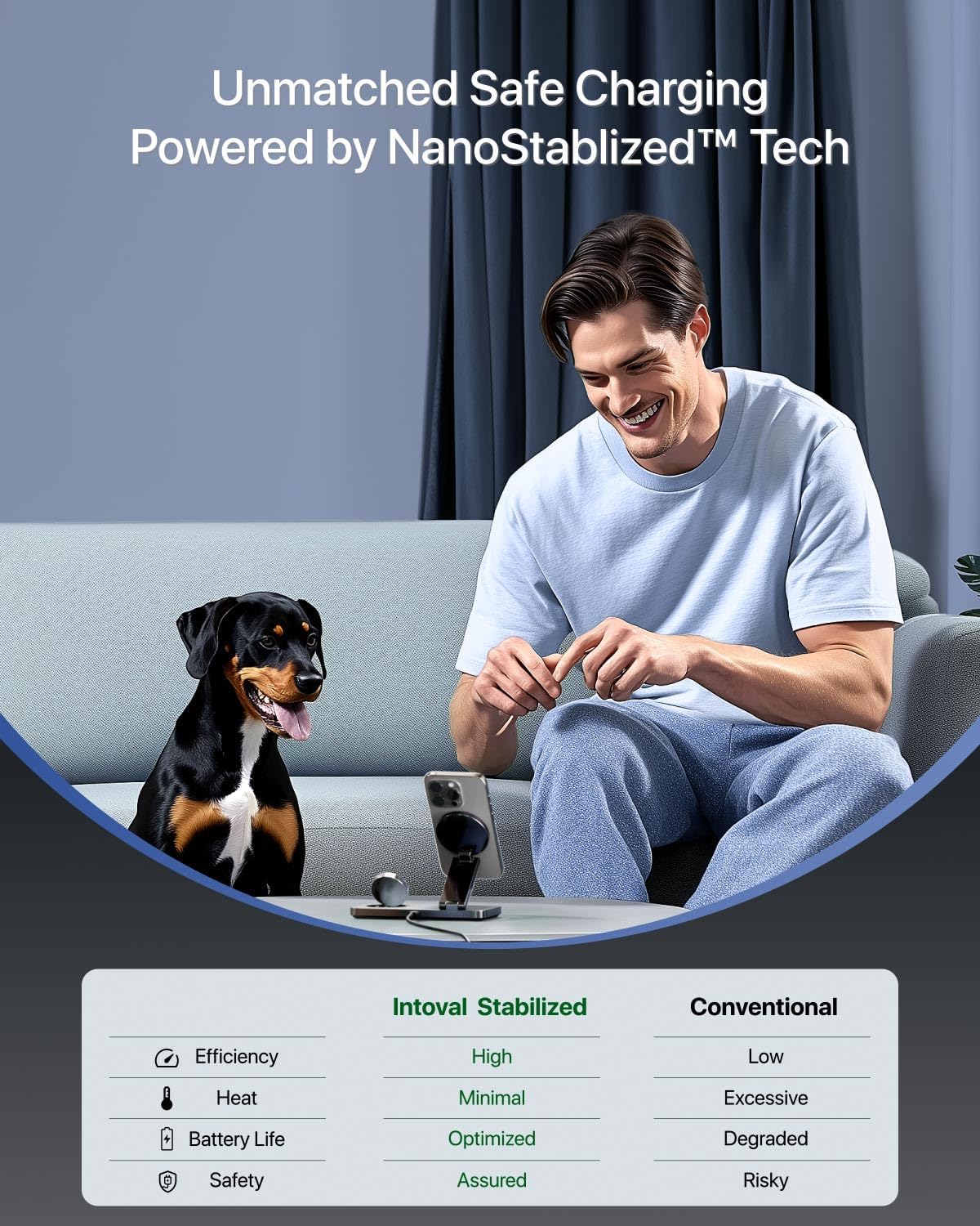 【Safe and Ultra-Fast Charging】Stay worry-free with our Qi2-certified 3-in-1 magnetic charger, delivering 15W of ultra-fast charging while ensuring top-tier protection against overheating, overvoltage, and overtemperature. Enjoy peace of mind every night, knowing your devices are charged safely and efficiently.