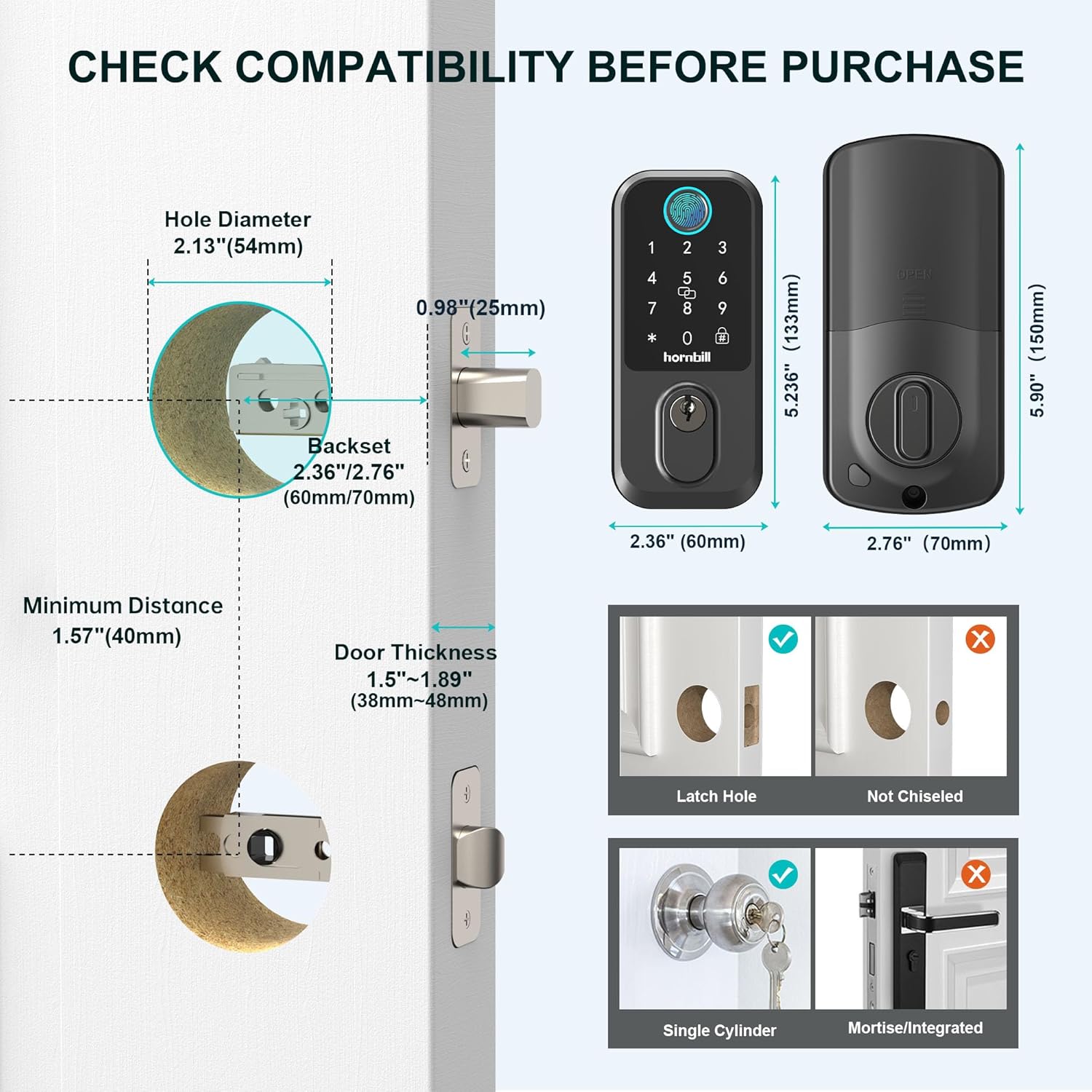 【WiFi Remote Unlock/Lock】Remotely unlock Hornbill’s fingerprint door lock—perfect for vacations or when away. Keep the gateway within 16ft (10ft if walls block) of the lock and router for seamless 2.4GHz WiFi. Stay connected and in control from anywhere.