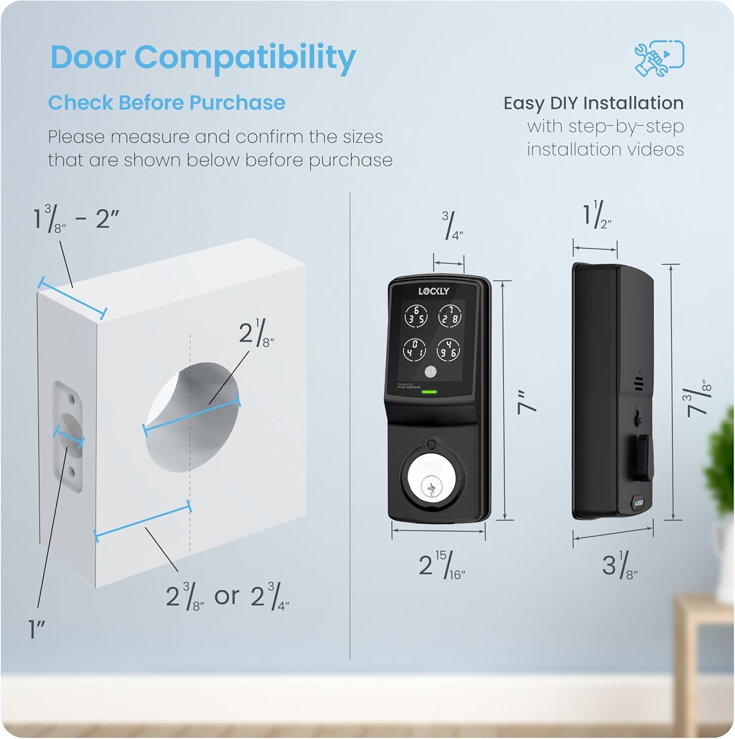Easy Installation & Customer Service: Lockly smart locks are easy to install, provide detailed installation video introduction, available 24/7 for you by professional customer service team. Please contact us by phone, email or online chat if you need help.