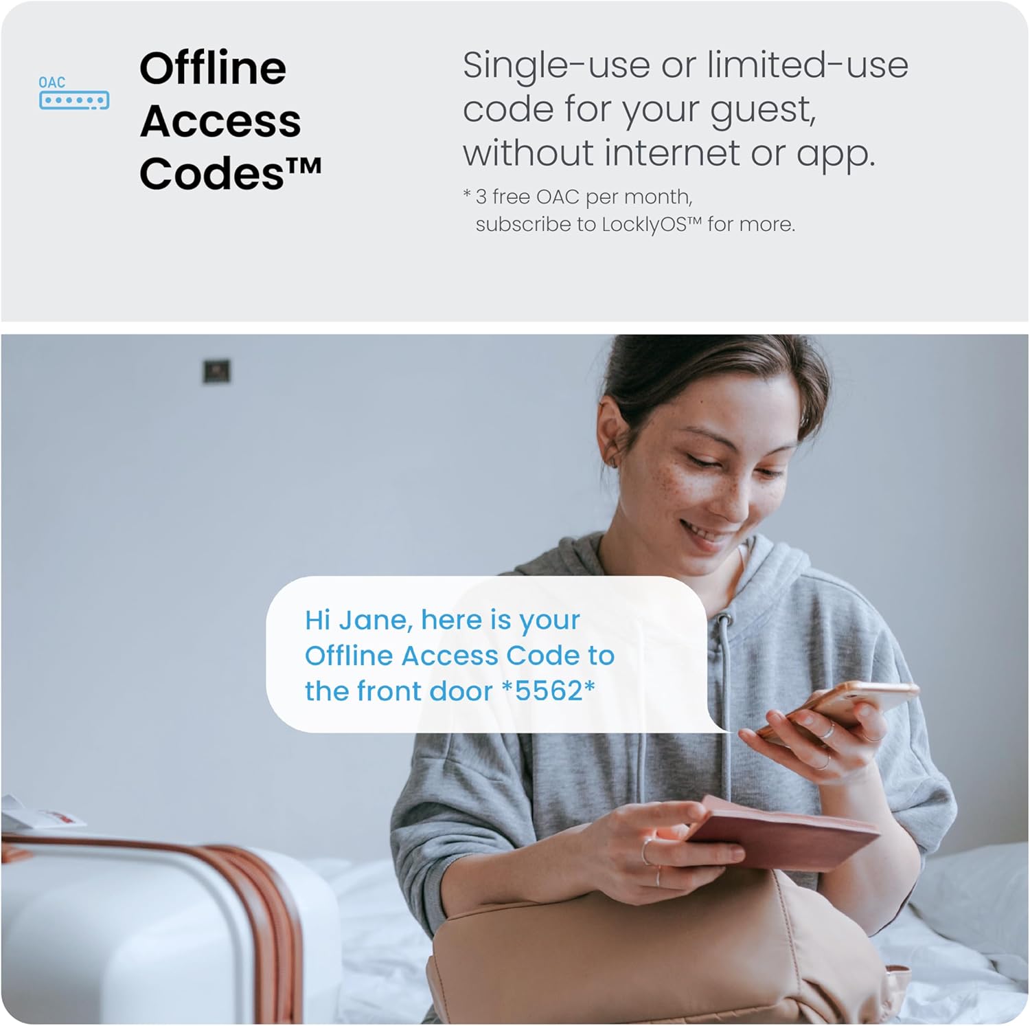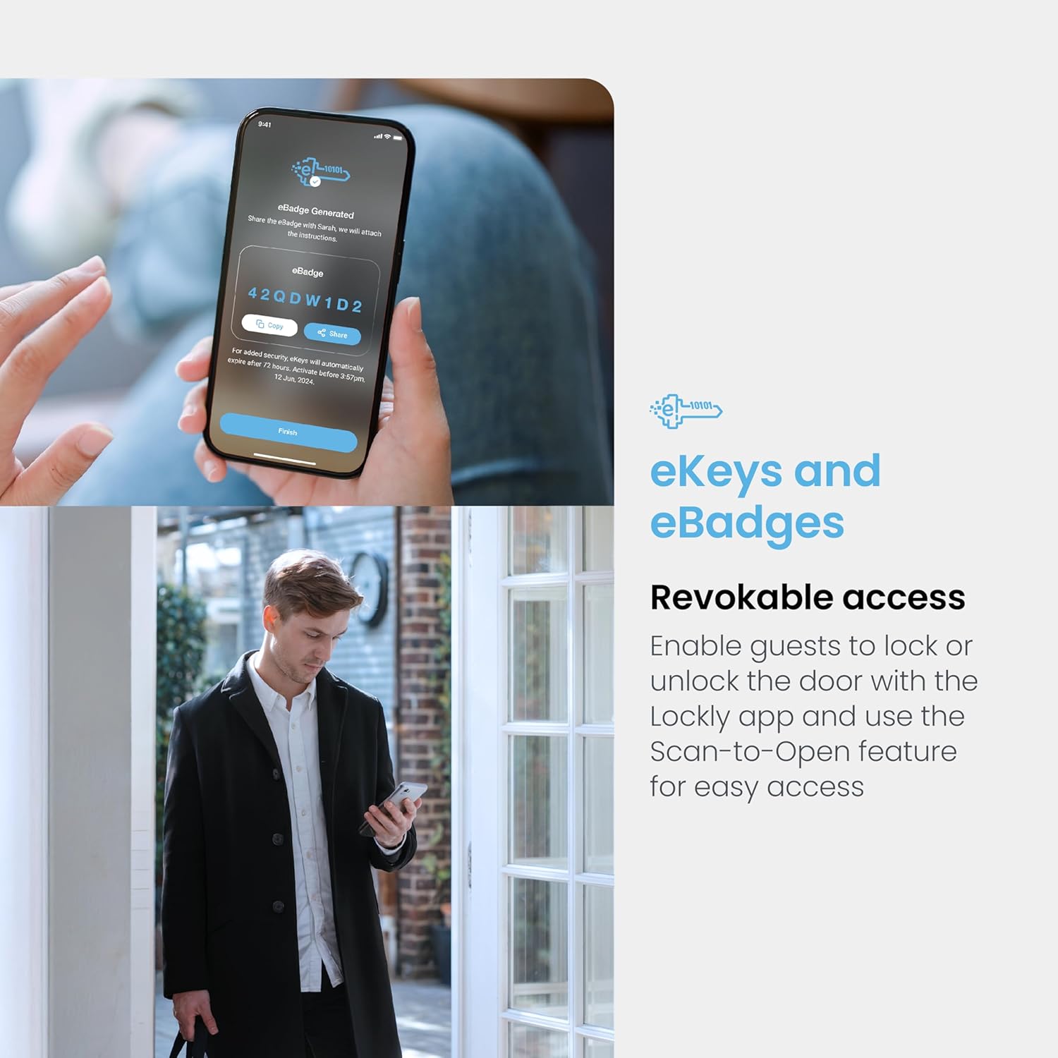 Real-Time Monitoring & Alerts: Monitor open/closed door lock smart status from anywhere with real-time alerts sent to your smartphone; Auto lock & One Touch lock, eKeys & eBadges: Grant revokable access to family, friends and visitors via Lockly app; Offline Access Codes: Grant access codes that can be used offline without Wi-Fi or Internet to trusted users.
