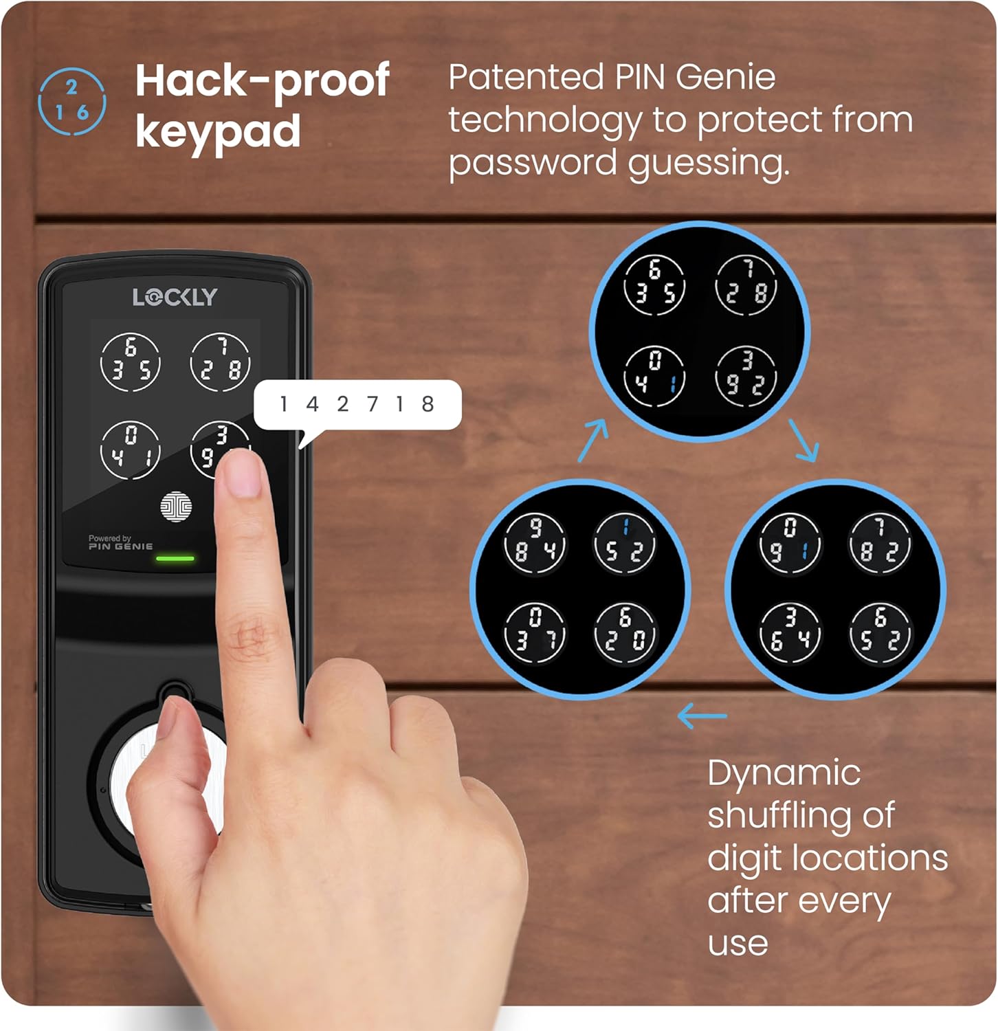 Peek-Proof Digital Keypad: Lockly smart lock deadbolt has unique patent keypad, four circles can set 6 digits code, enter the password after the keypad digits will change, to prevent others from peeping into your password, high security keypad deadbolt, toughened film touch screen, long service life.
