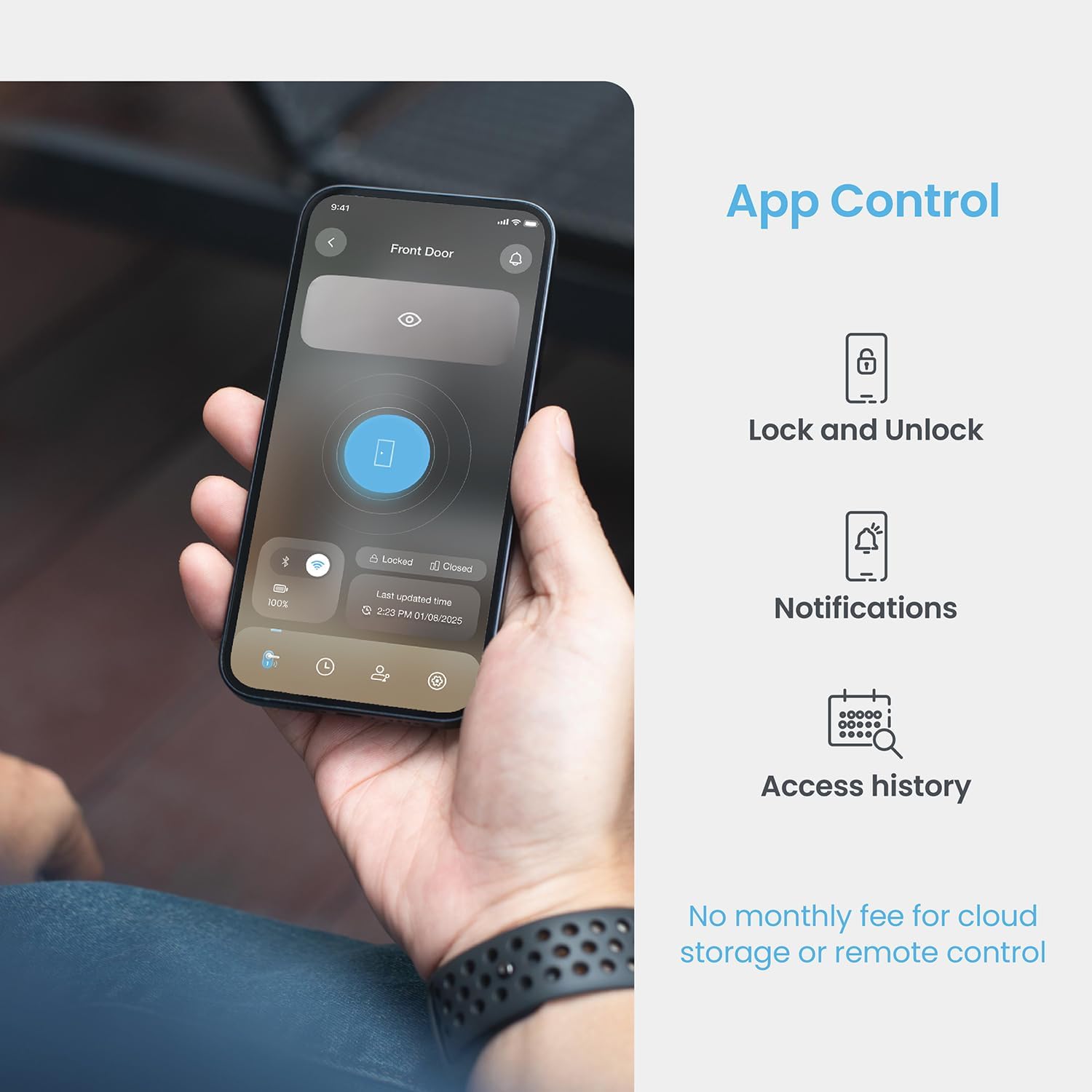 Real-Time Monitoring & Support: Monitor and control your front door smart lock via the Lockly Home app, with no monthly fees. Enjoy a 5-year mechanical warranty and easy DIY installation with step-by-step guidance.
