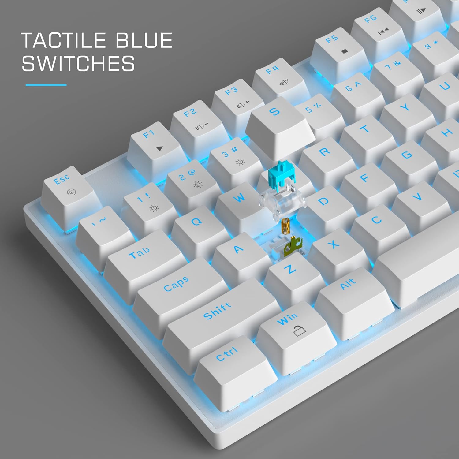 CLASSIC MECHANICAL SWITCH: Blue Switches are tactile, clicky switches with clearly noticeable and audible feedback. Since you can accurately feel that you have registered a key, you don’t have to keep pressing the key. They are undoubtedly the best choice for typists.