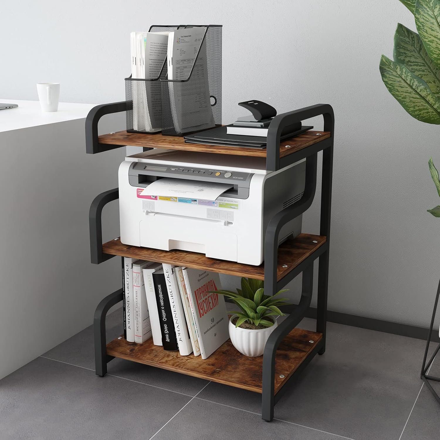 【Frees up more space】our desktop printer stand comes with a 3-tier design, allowing you to place Office Supplies on the middle tier while the top or bottom layer can securely hold a printer/desktop, effectively helping you get rid of cramped Office space and creating a more comfortable working environment