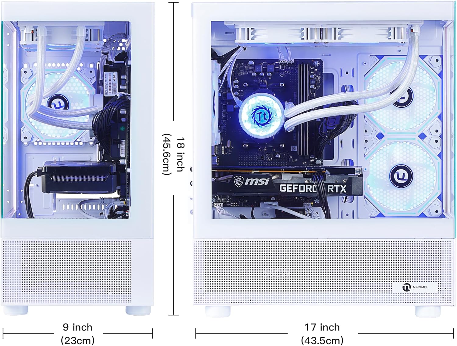 Brand NINGMEI Usage Home/Office/Work/Gaming/Business Type Gaming PC CPU AMD Ryzen 7 5700X RAM 32GB(16G*2) DDR4 3200MHz PSU 600W Computer case Moonlight white Graphics GeForce RTX 5060 Cooling System Water cooling Operating System Windows 11 Home