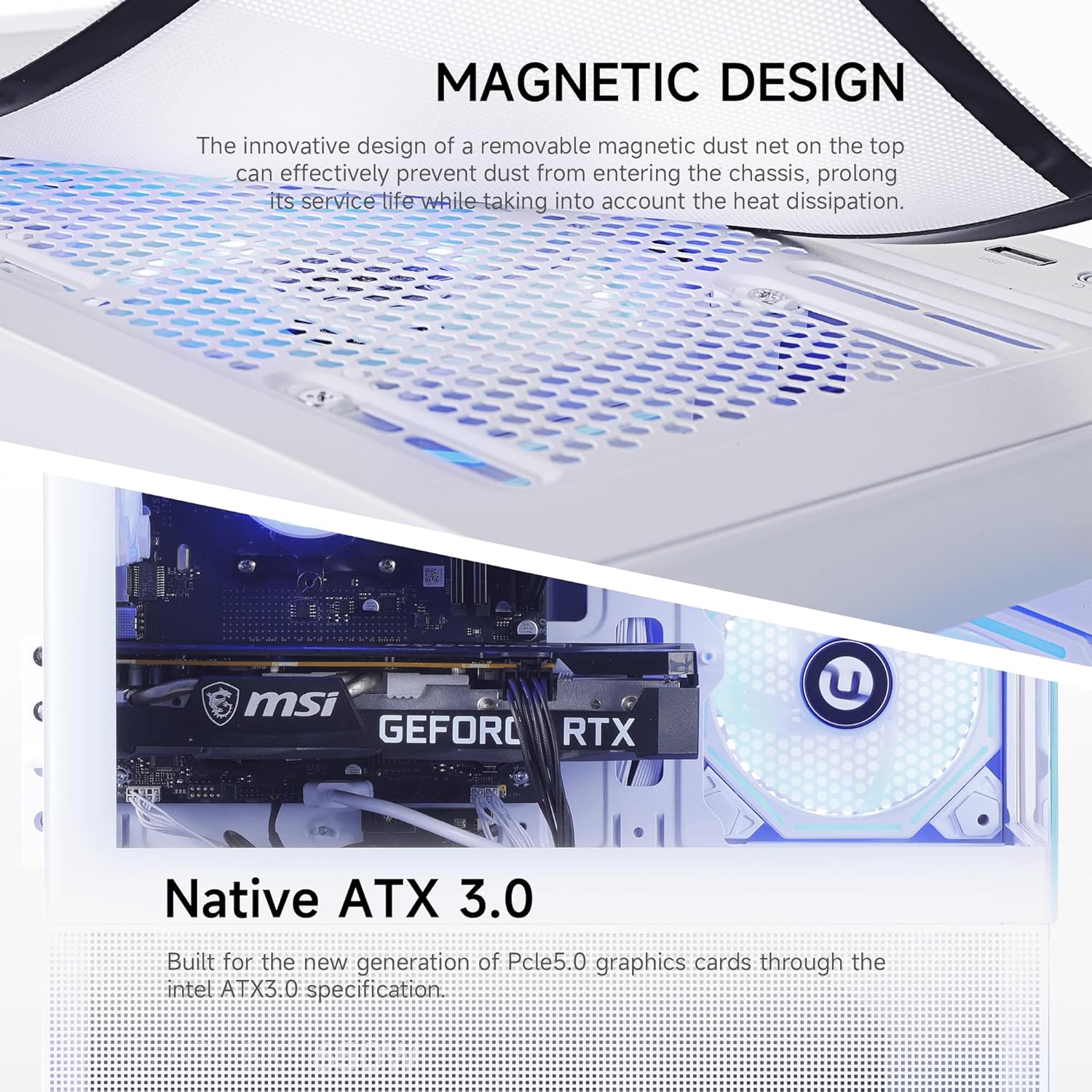 【Cooler & Power】:RGB colorful 240mm liquid cooling PC & 4 ARGB System Color Adjustable Ring Fans ▪ 650W 80+ Bronze Certified Power Supply.