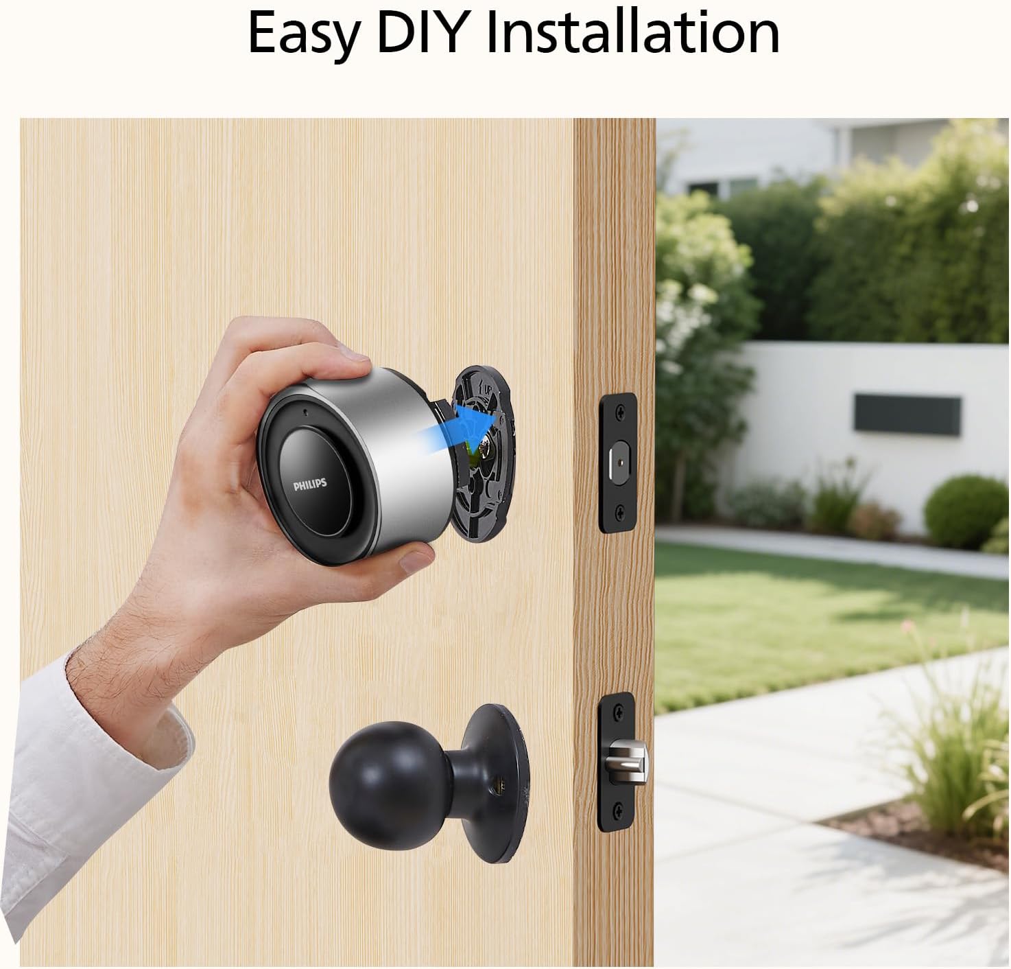 Upgrade Your Old Lock to Smart with Ease – The Philips Wi-Fi Smart Retrofit Lock transforms your regular deadbolt into a smart one, adding cool features without changing how it looks or the hardware. You can still use your old keys!