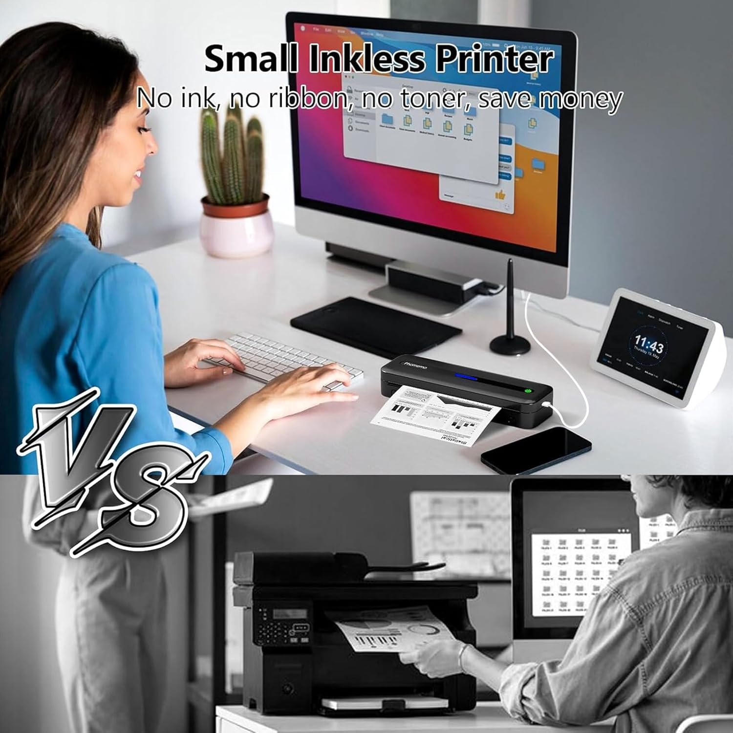 Cost-Effective & Inkless Printing: Adopt advanced thermal technology, the small wireless printer print no ink, no toner or ribbons, no clogging and no cleaning problems! Just use thermal paper, you can print more efficient and economical