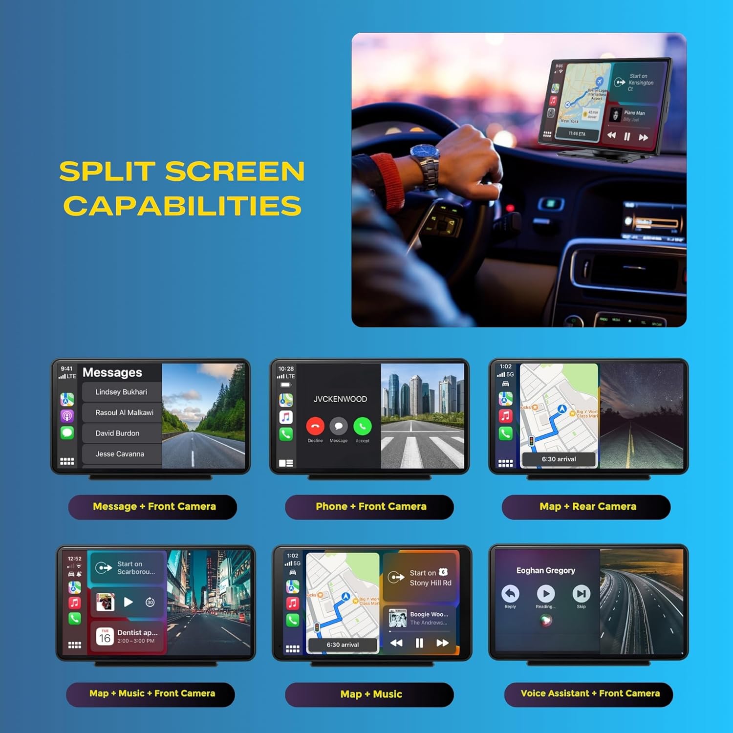 ✅ [Real-Time Car GPS Navigation] – Experience enhanced map visuals displayed seamlessly on your Apple CarPlay screen, providing real-time updates for your car GPS or truck GPS travels. Utilize popular map applications like Google Maps and Waze effortlessly. Unlike traditional navigators, our car GPS system syncs with your smartphone’s latest GPS navigation, eliminating the need for constant updates. Plus, with a vivid 9-inch display, enjoy a more immersive visual experience on the road.