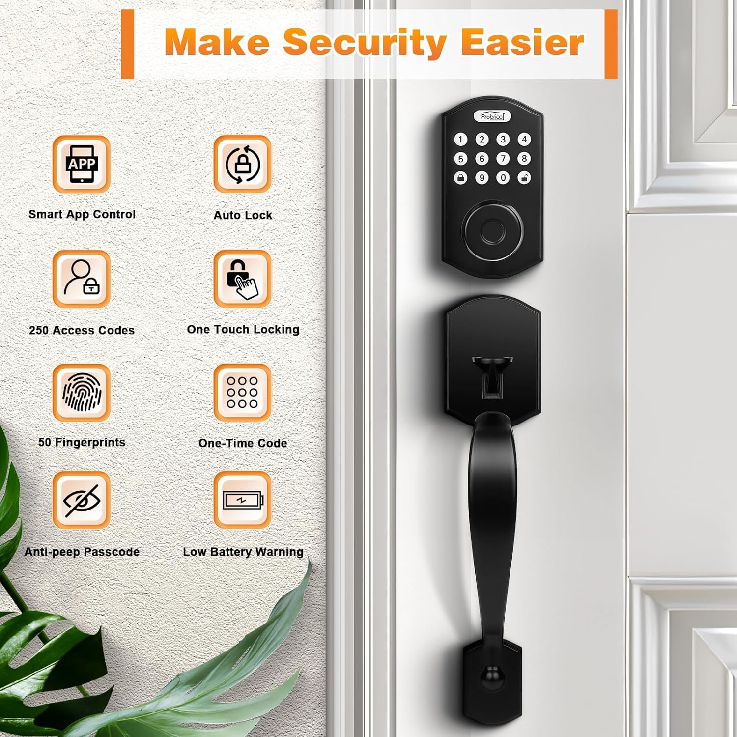 Probrico Smart Keyless Entry Door Lock Deadbolt,Front Door Handleset with Fingerprint Deadbolt, Electronic Digital Keypad Deadbolt Lock with Handle,App,Auto-Locking,Black
