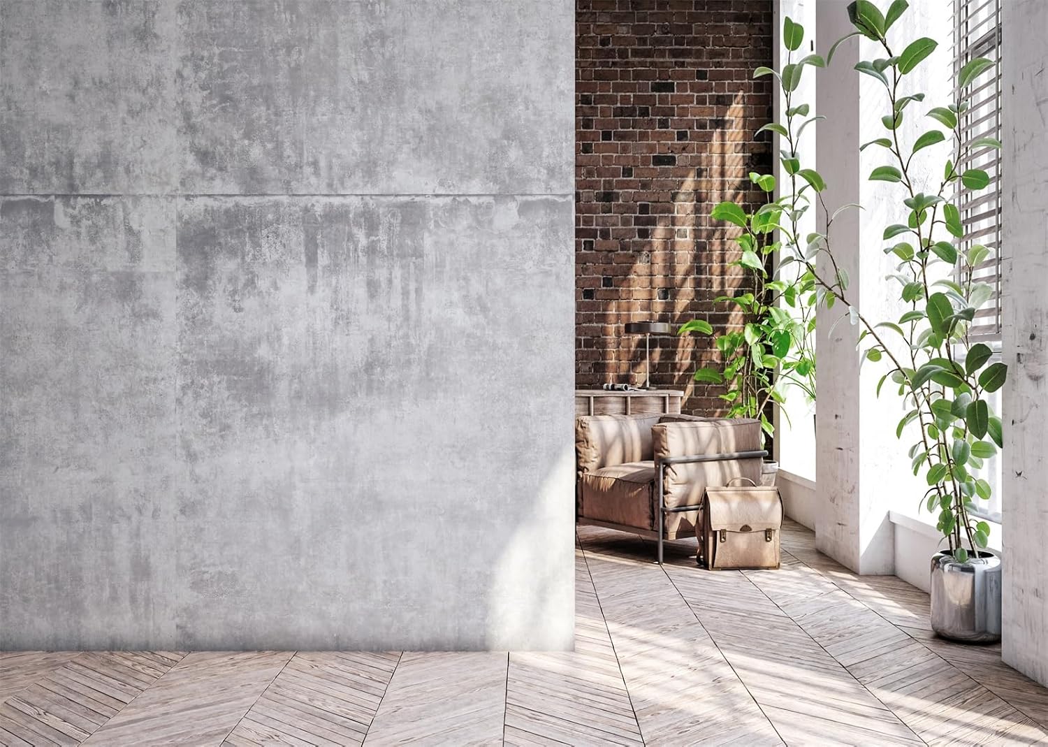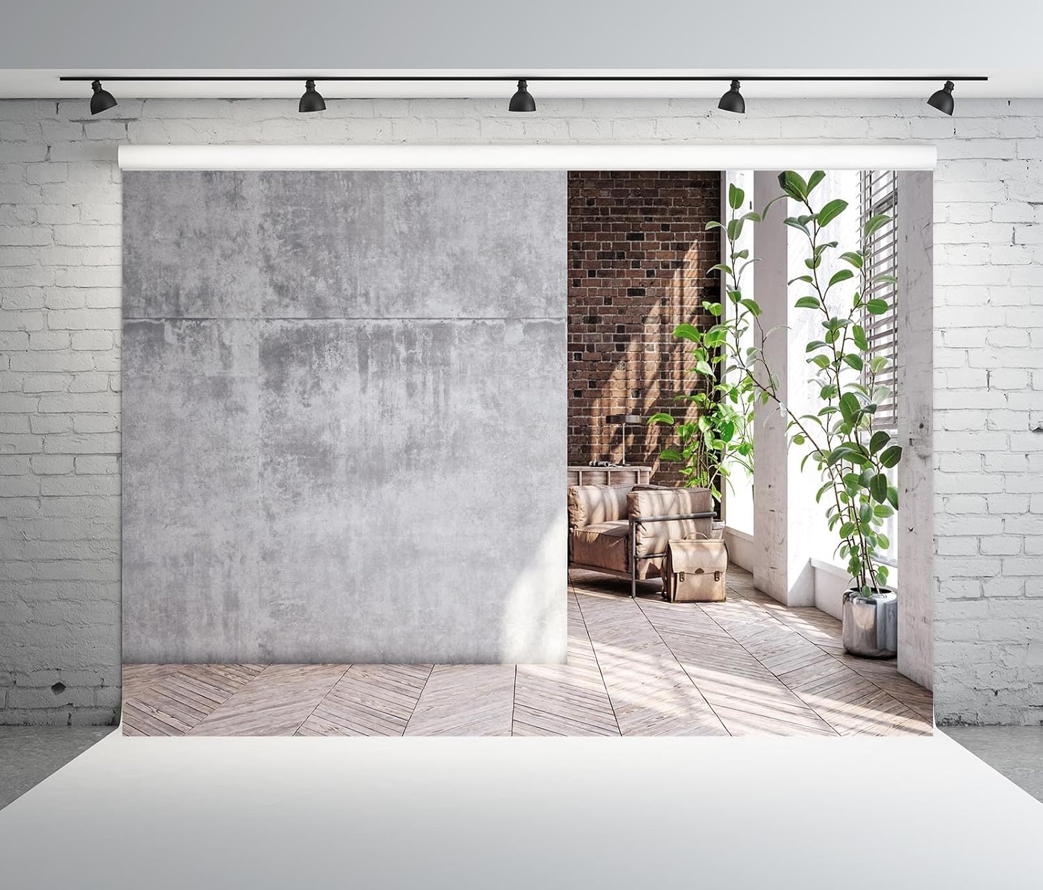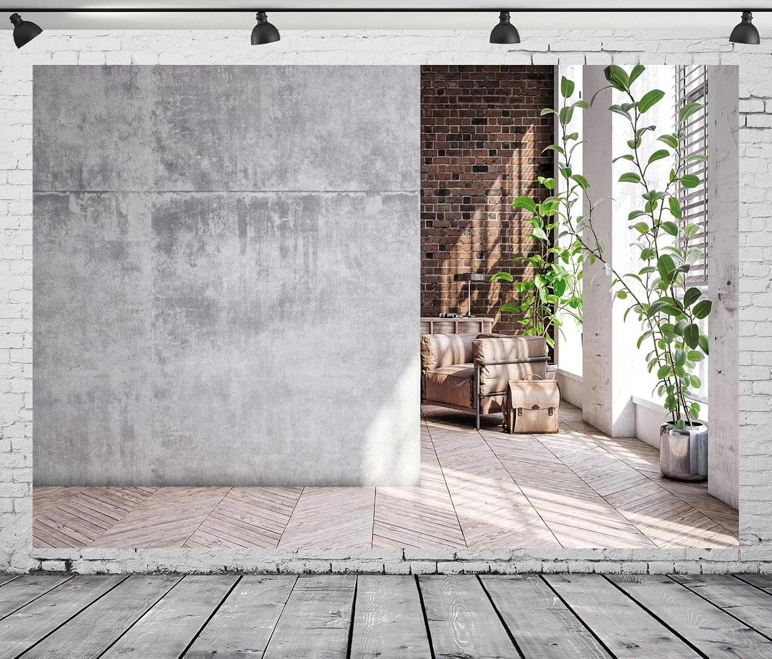 10×6.5ft Fabric Industrial Style Living Room Backdrop Interior Wooden Floor Plants Decor Concrete Wall Photography Background Home Office Wall Decor Zoom Meeting Photo Studio Props