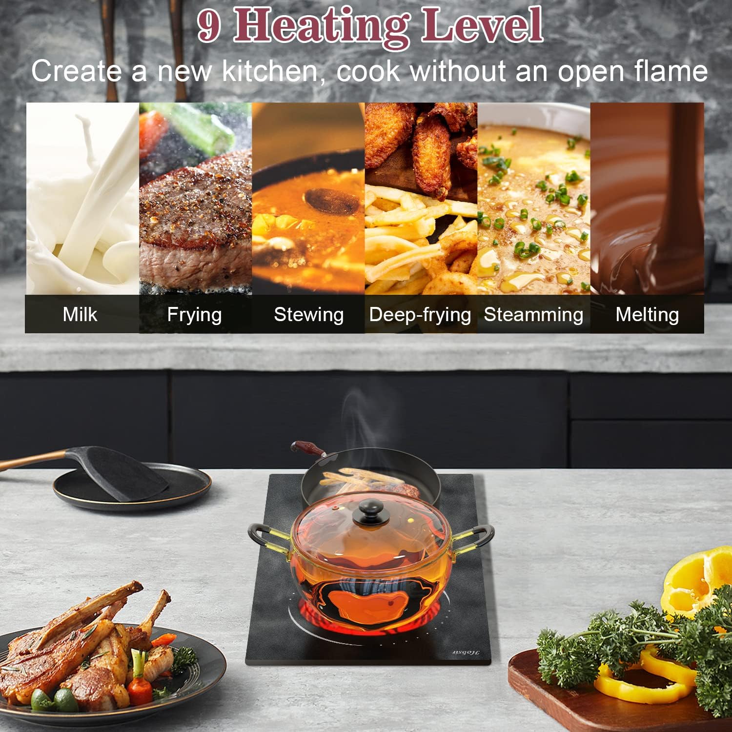 Hobsir 12 inch electric cooktop has 9 power levels to meet your different choice to cook a variety of different foods, perfect for braise, fry, simmer, steaming, boil, stir-frying, roast.