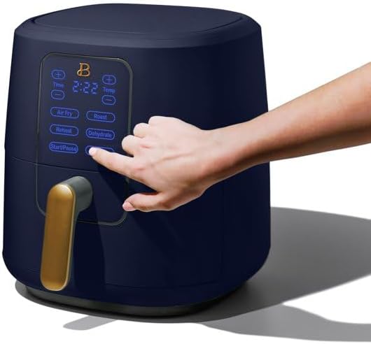 The 6-Quart Air Fryer with TurboCrisp Technology and Touch-Activated Display is perfect easy meals on busy weeknights. Air fry, roast, reheat or dehydrate your favorite meals with the patent-pending TurboCrisp Technology. Thoughtfully designed with sleek, touch-activated illumination and our signature gold accents, the air fryer has a five-pound food capacity ideal for serving five to seven people.