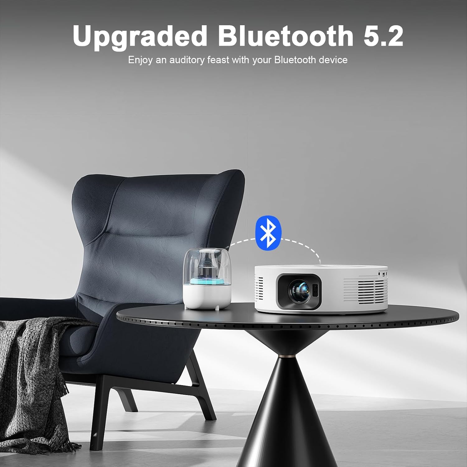 【Fully Sealed Engine & Stylish Design】The portable projector features a fully sealed optical core that protects against dust and greatly reduces screen black spots and image quality loss. Combined with advanced LED lighting and cooling technology, this projector lasts longer. In addition, the home theater projector is the first projector on the market with a circular design, which is not only powerful but also adds a chic touch to your home décor. It is also ideal for holiday gifts.