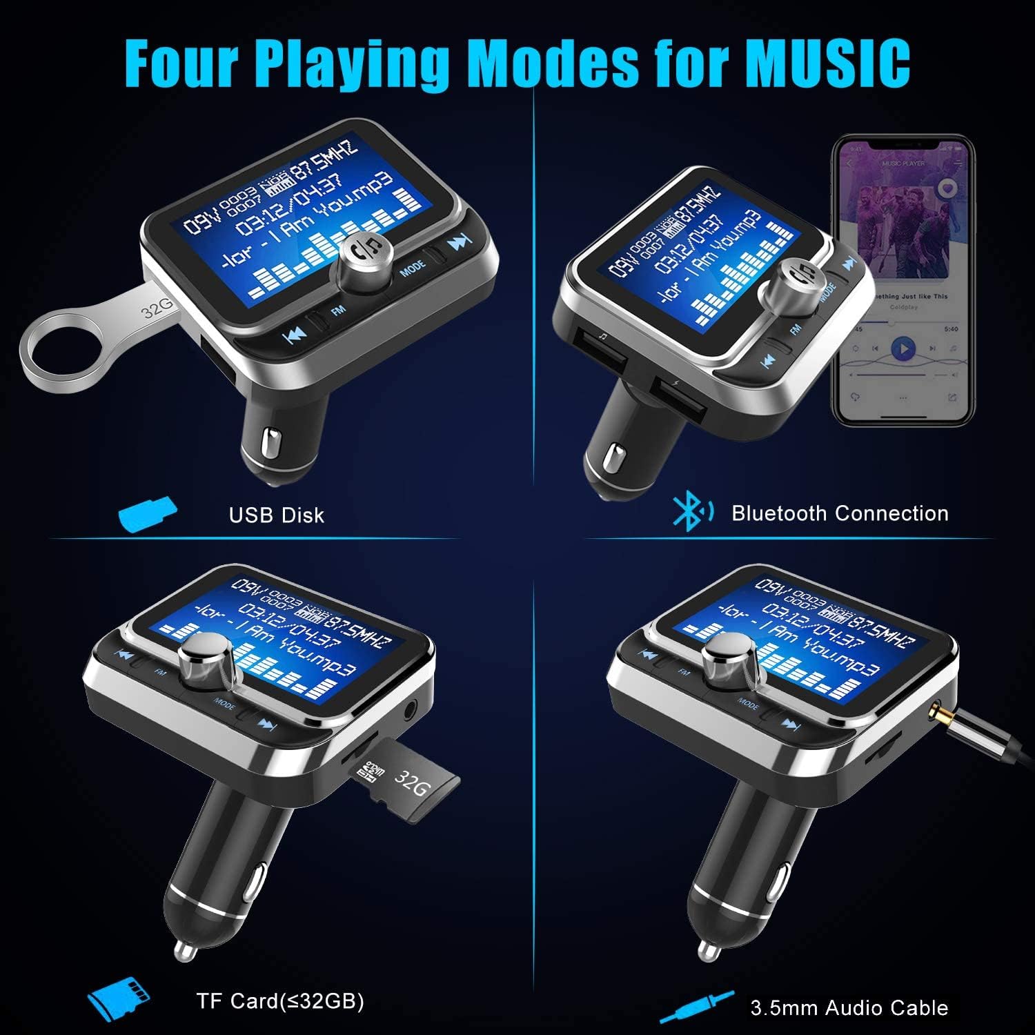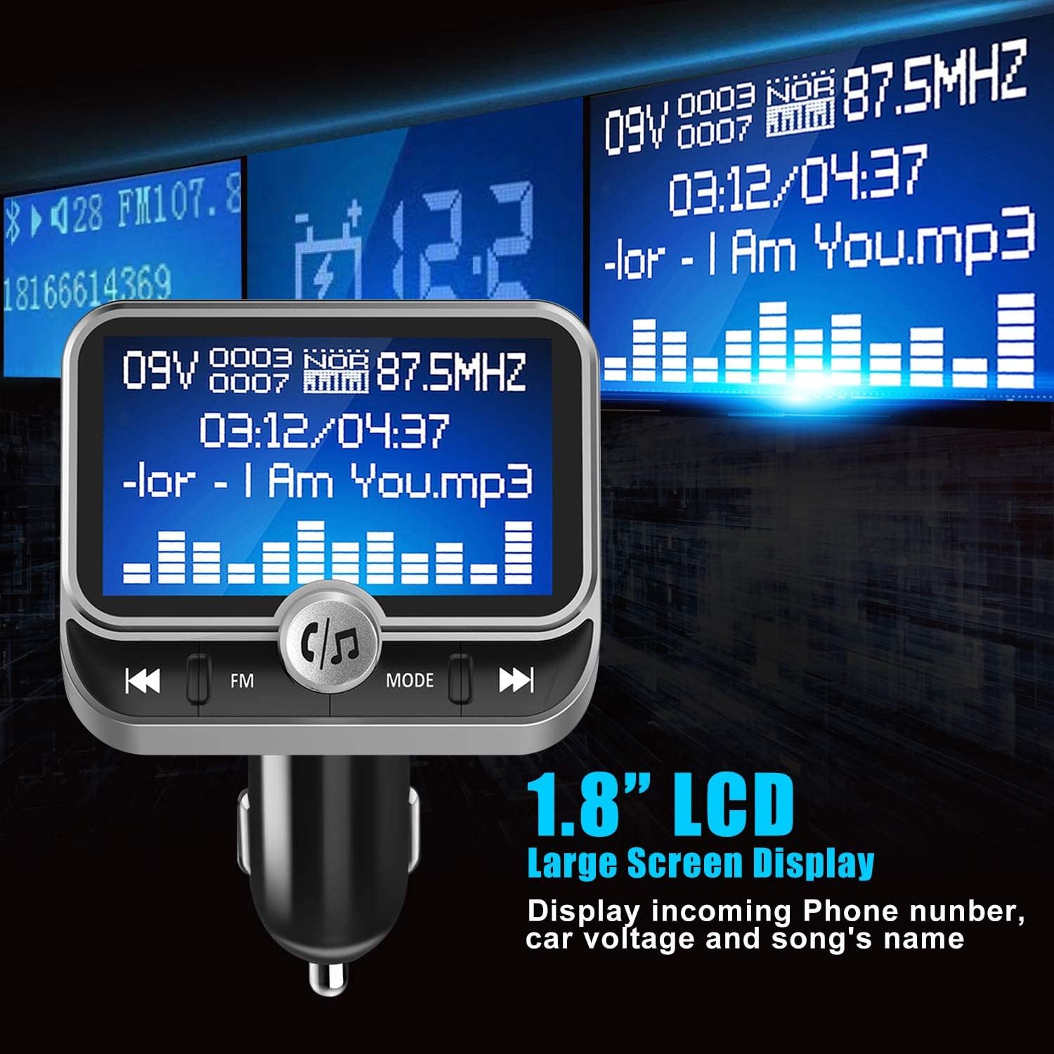 Bluetooth FM Transmitter for Car, Transmitter Bluetooth Car Wireless Radio Adapter Hands-Free Car Kit with 1.8 inch Display, Dual USB Car Charger, AUX Input/Output, TF Card Mp3 Player, Silver (A)