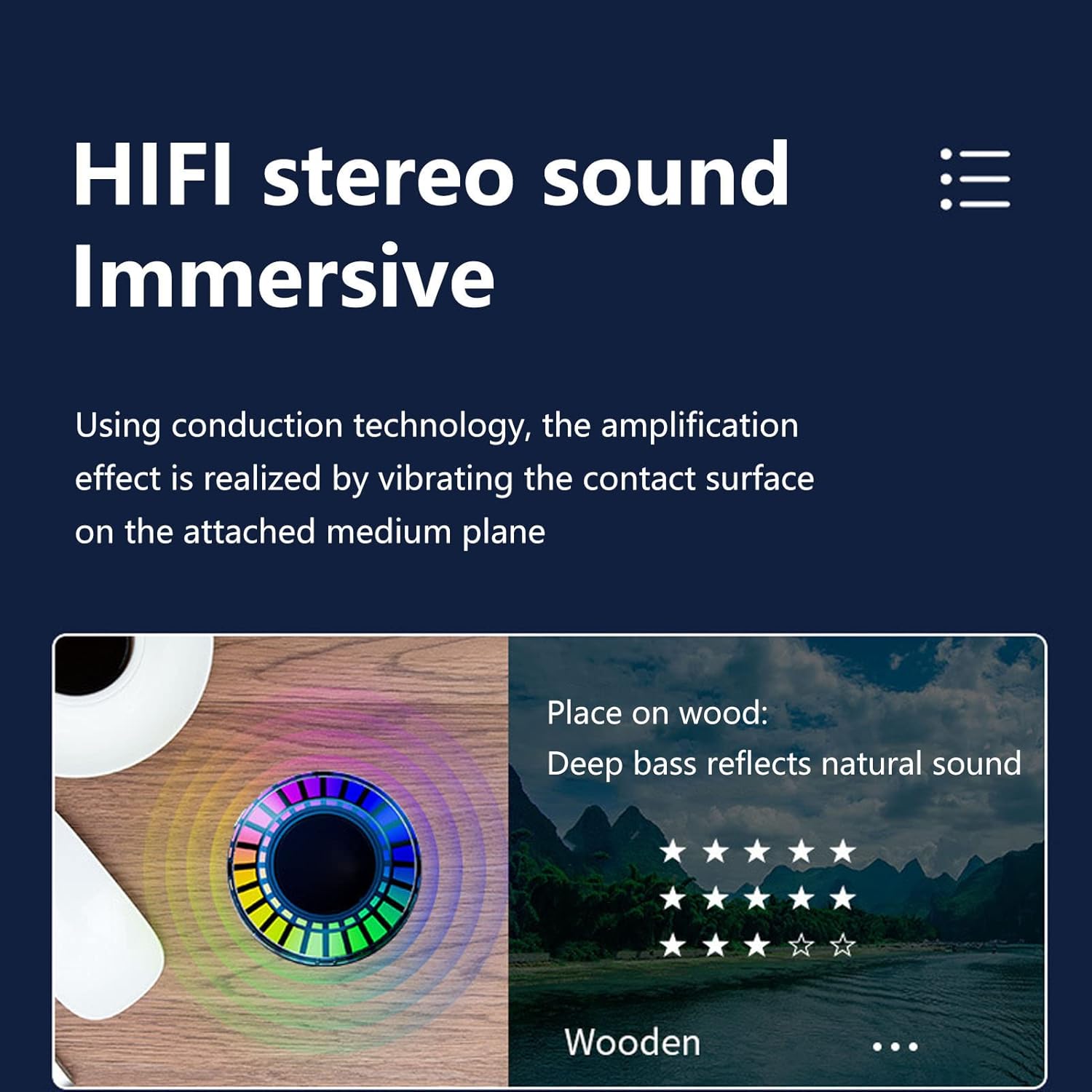 Sound Amplification: Bluetooth mini speaker adopts conduction technology to achieve sound amplification by vibrating the on the plane of the attached media.