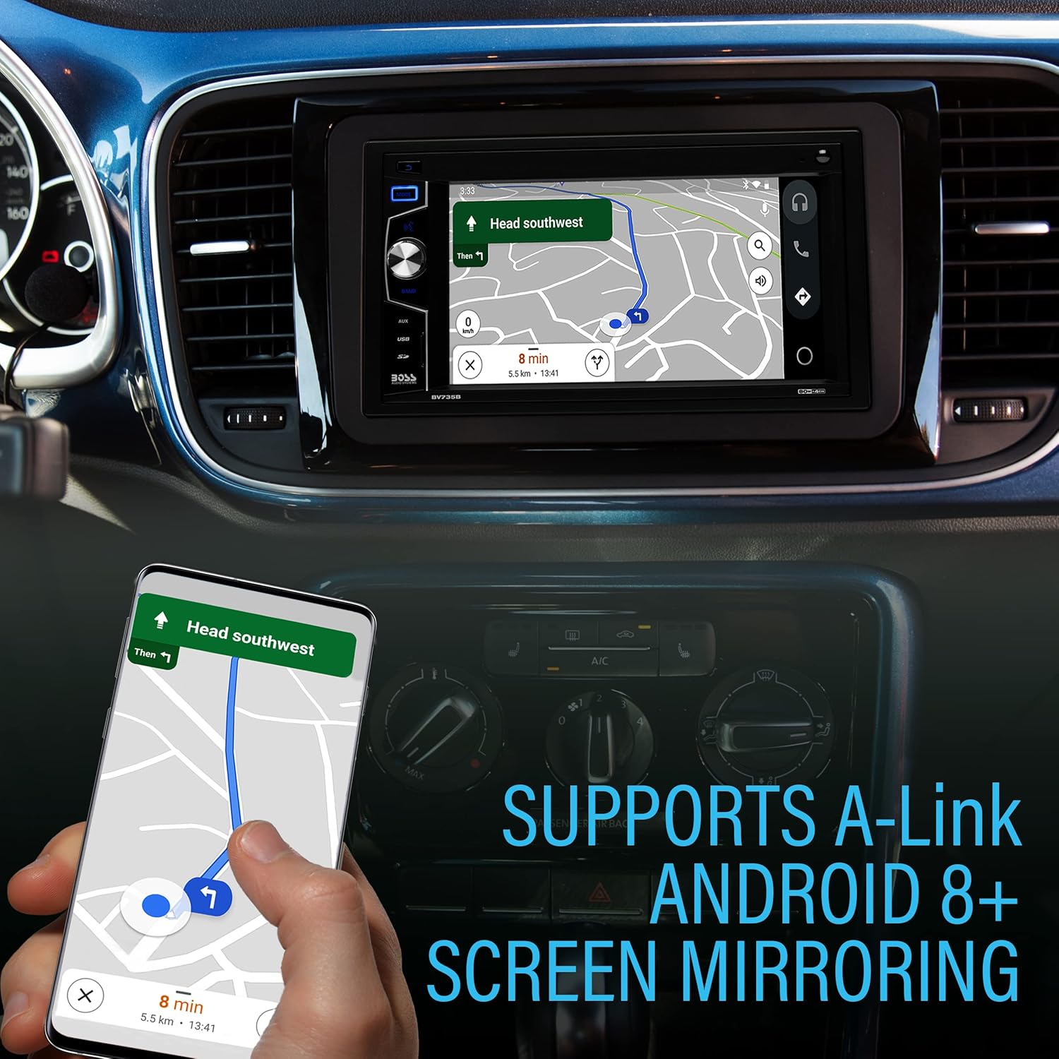 Screen Mirroring – BOSS Audio Systems A-LINK Technology allows your Android 8 + screen to be duplicated on the receiver’s larger screen. A-LINK enables you to clearly see your already familiar Navigation, Music, Movies and Apps on a much bigger scale