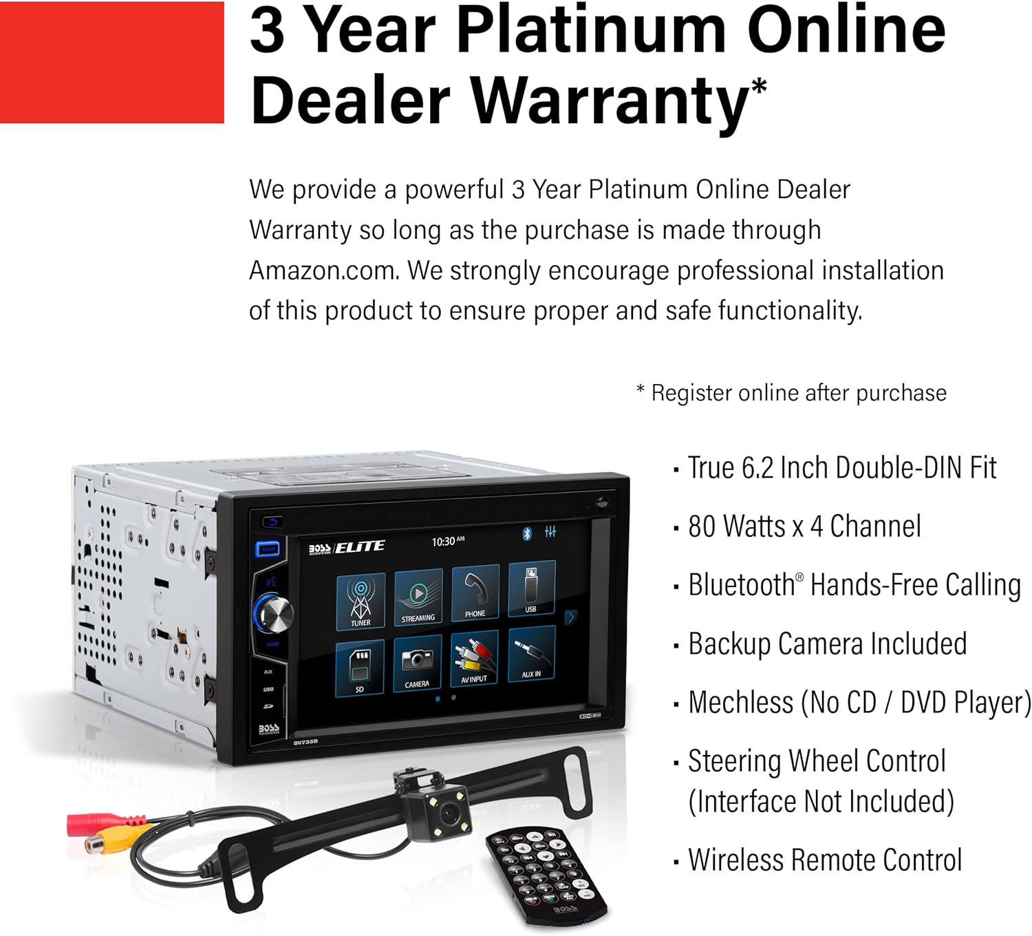 BOSS Audio Systems BV735BLC Car Stereo – Double Din, 6.2 Inch Touchscreen, Bluetooth, No CD DVD Player, AM/FM Radio Receiver, Wireless Remote Control, A-Link (Screen Mirroring), Backup Camera