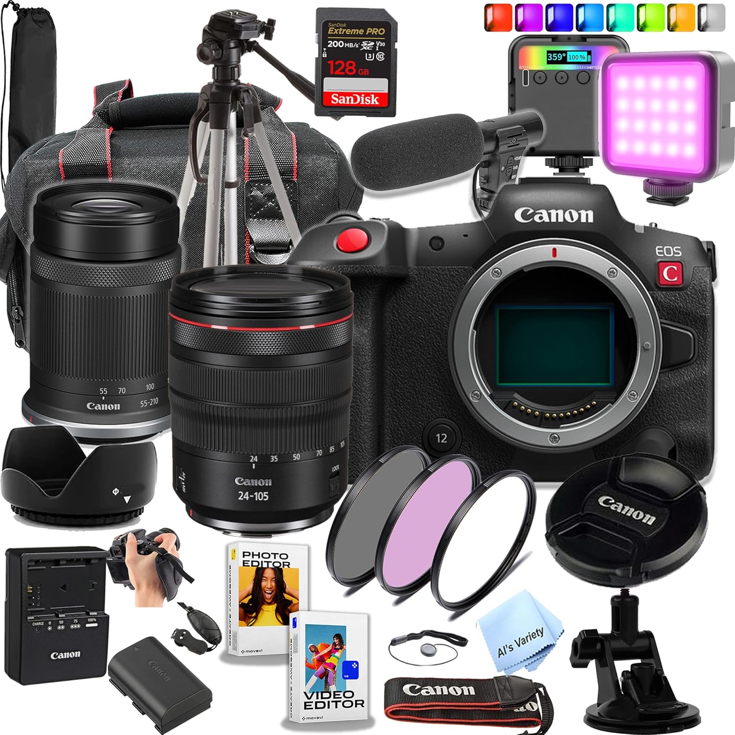 Canon EOS R5 C 45 MP Full-Frame Mirrorless Camera with 24-105mm L is USM & 55-210mm Lenses + 128GB Extreme Card + Case+ Microphone + RGB Video Light + Tripod + More (Content Creator Bundle) (Renewed)